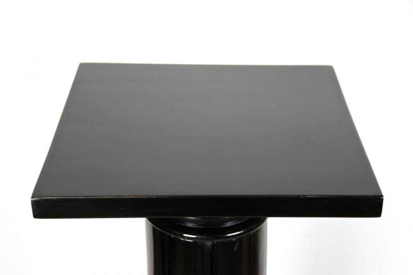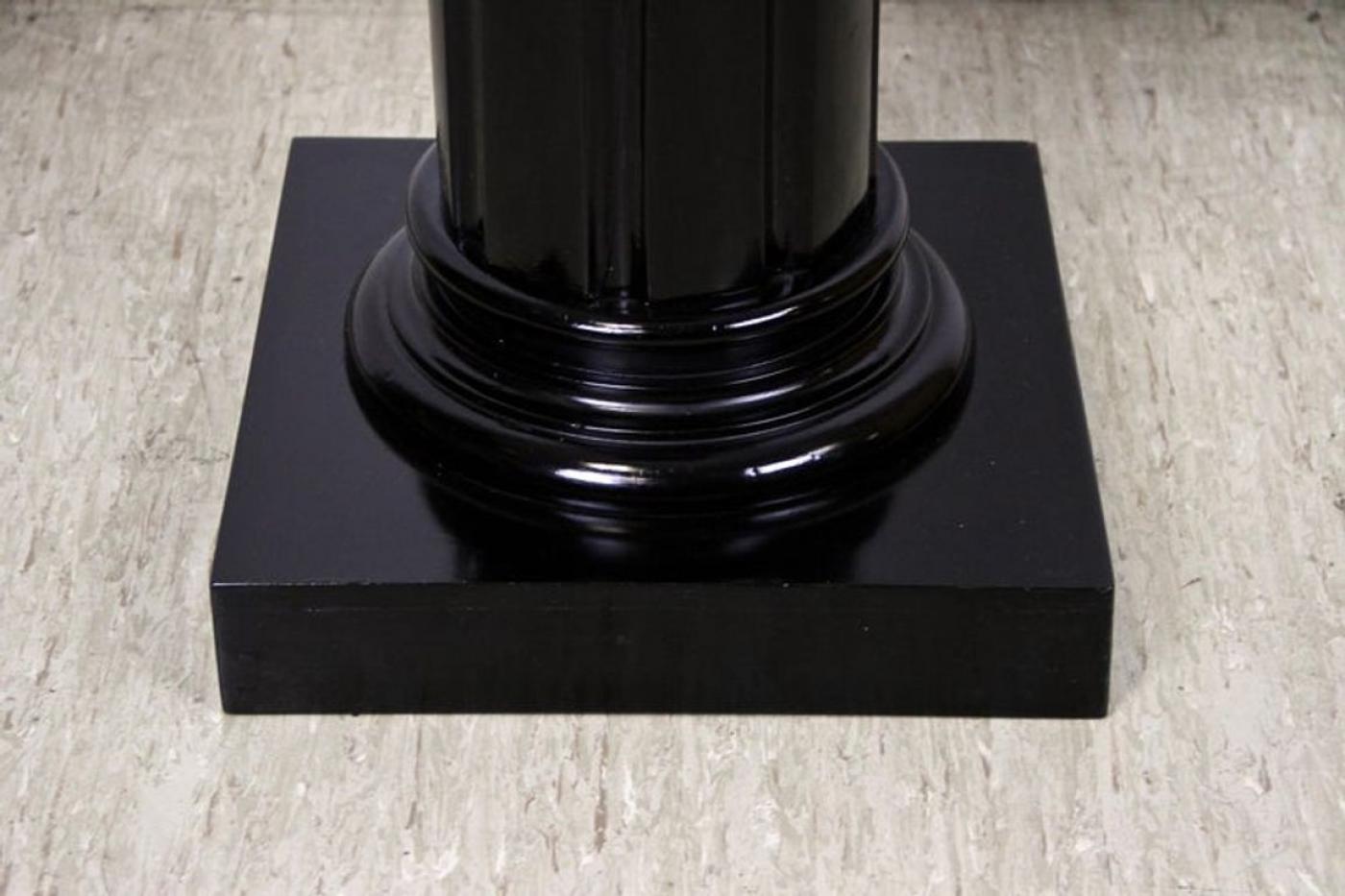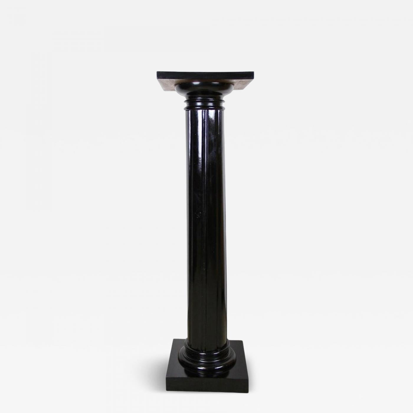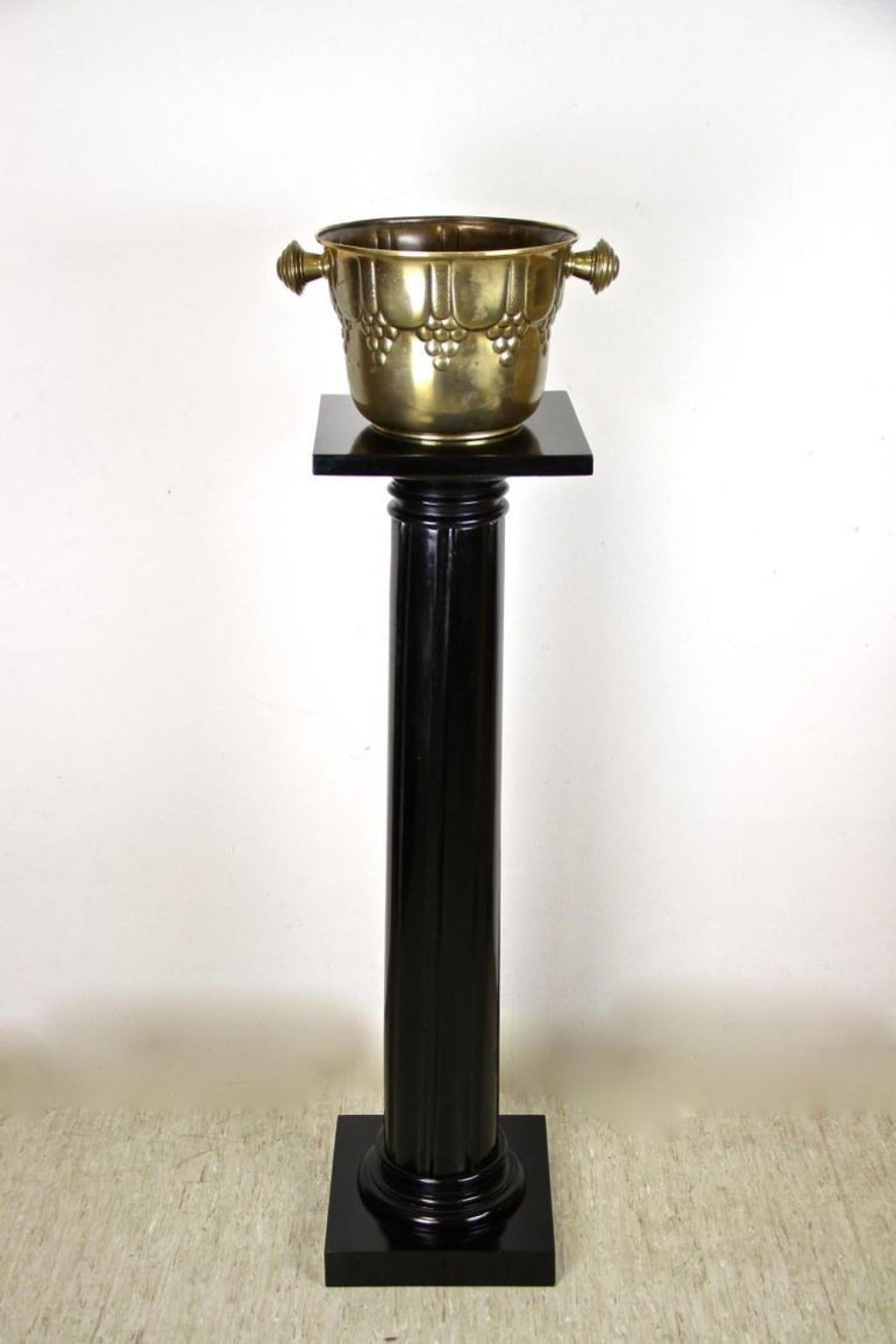 This 20th Century Art Nouveau pedestal, crafted around 1900 in Austria, features a solid beech wood construction with an ebonized, black shellac polished finish. The handcarved pedestal exhibits a straightforward design with a minimalistic straight pillar and a square rectangular top plate ideal for displaying decorative items such as busts or vases. Standing firmly on a square base plate, this well-preserved Art Nouveau column showcases the elegant craftsmanship of the early Austrian period. The use of ebonized wood enhances its timeless appeal, making it versatile for various interior displays.