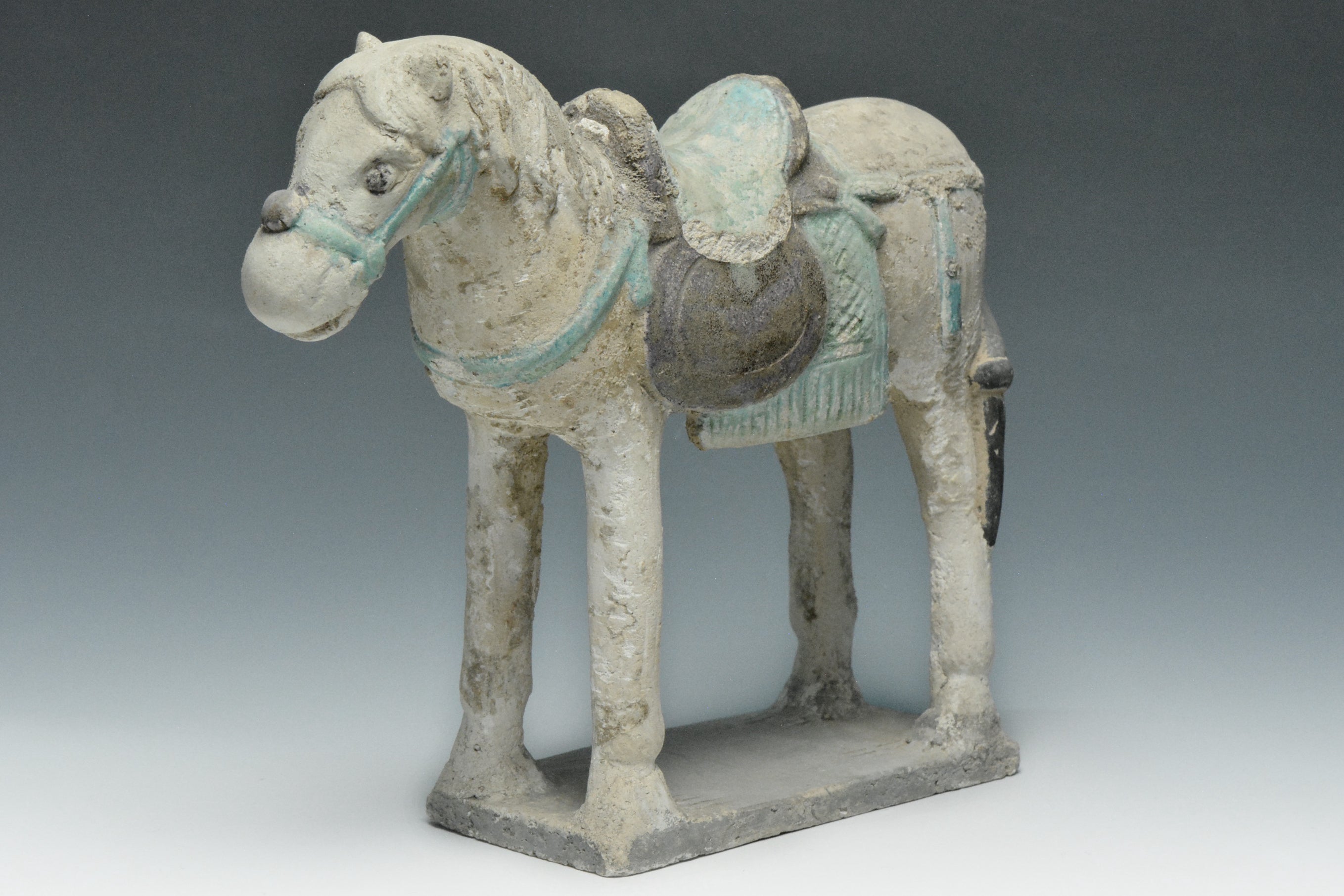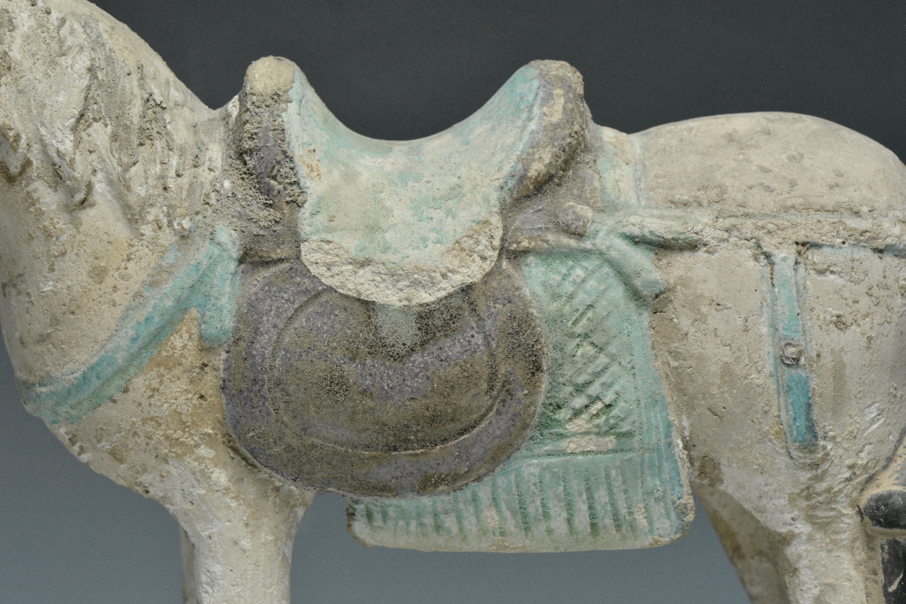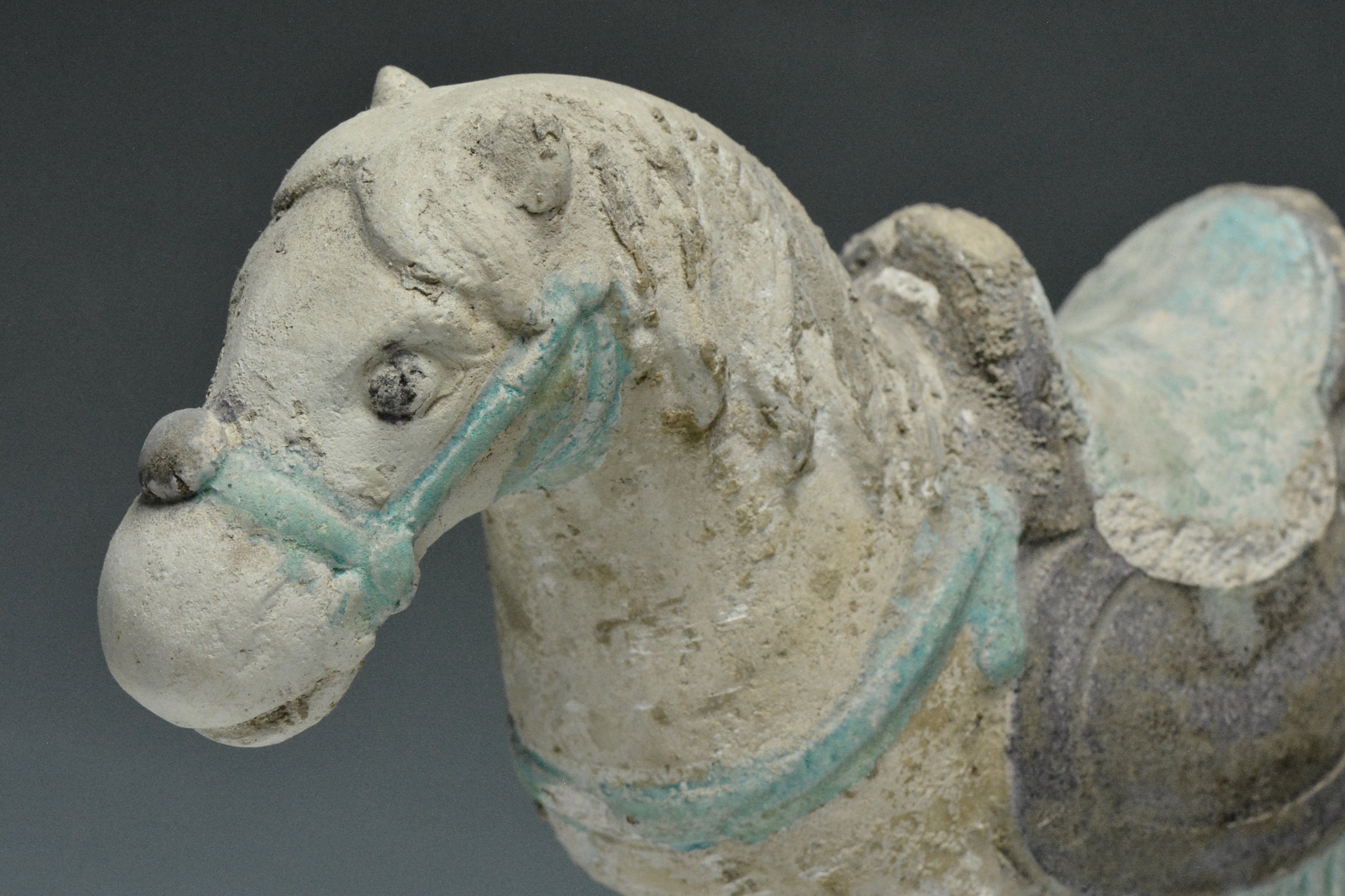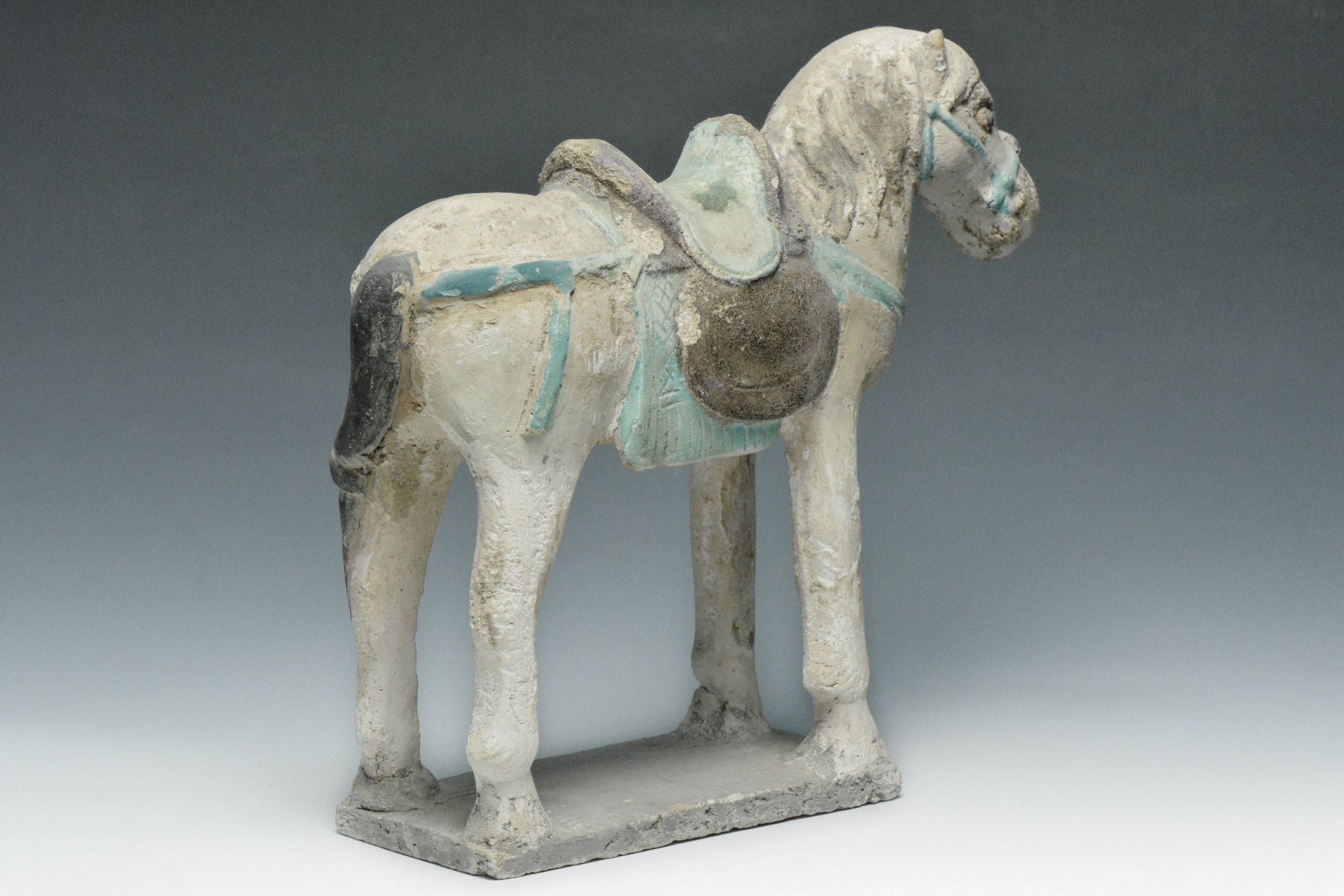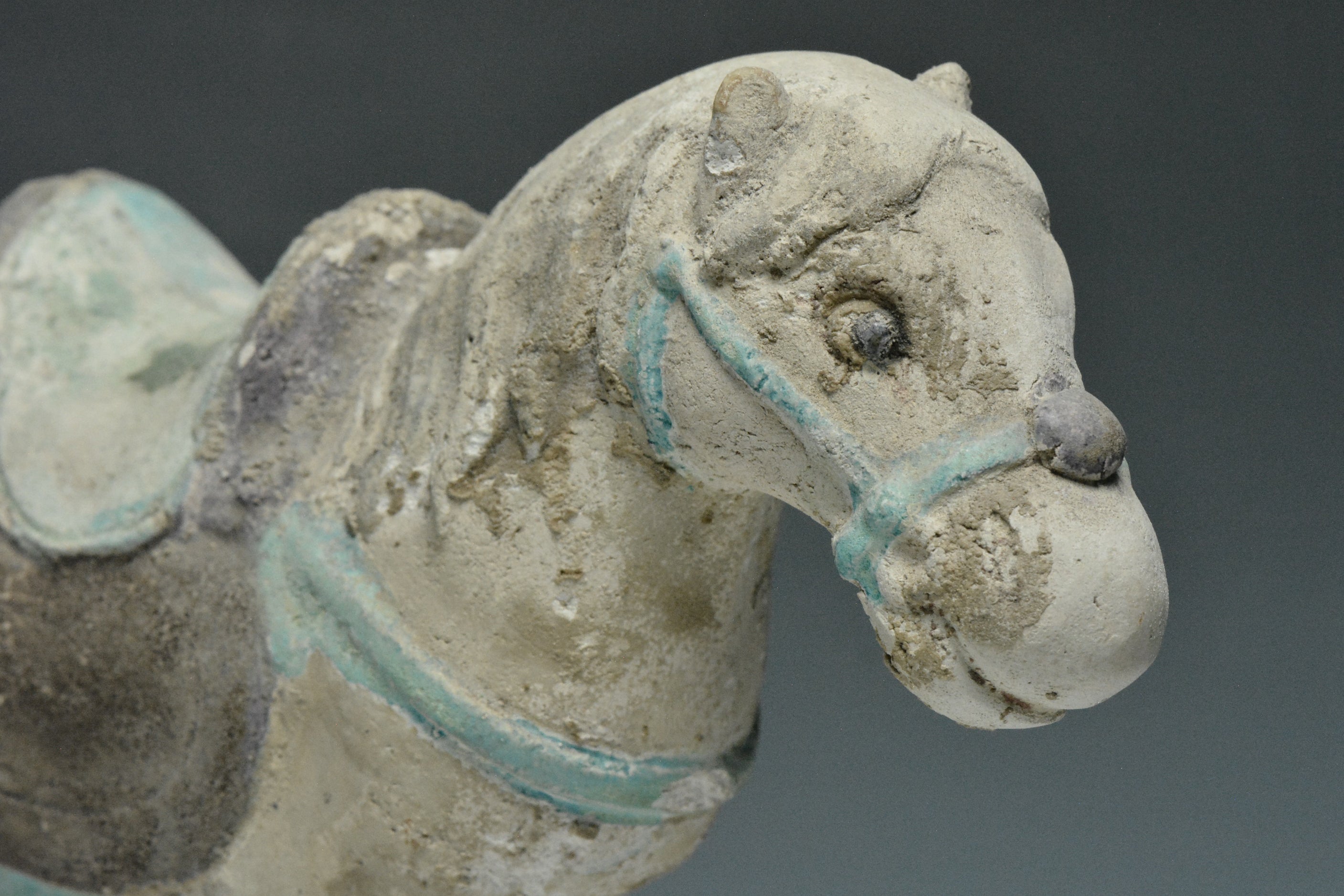 A CHINESE MING DYNASTY PAINTED POTTERY HORSE