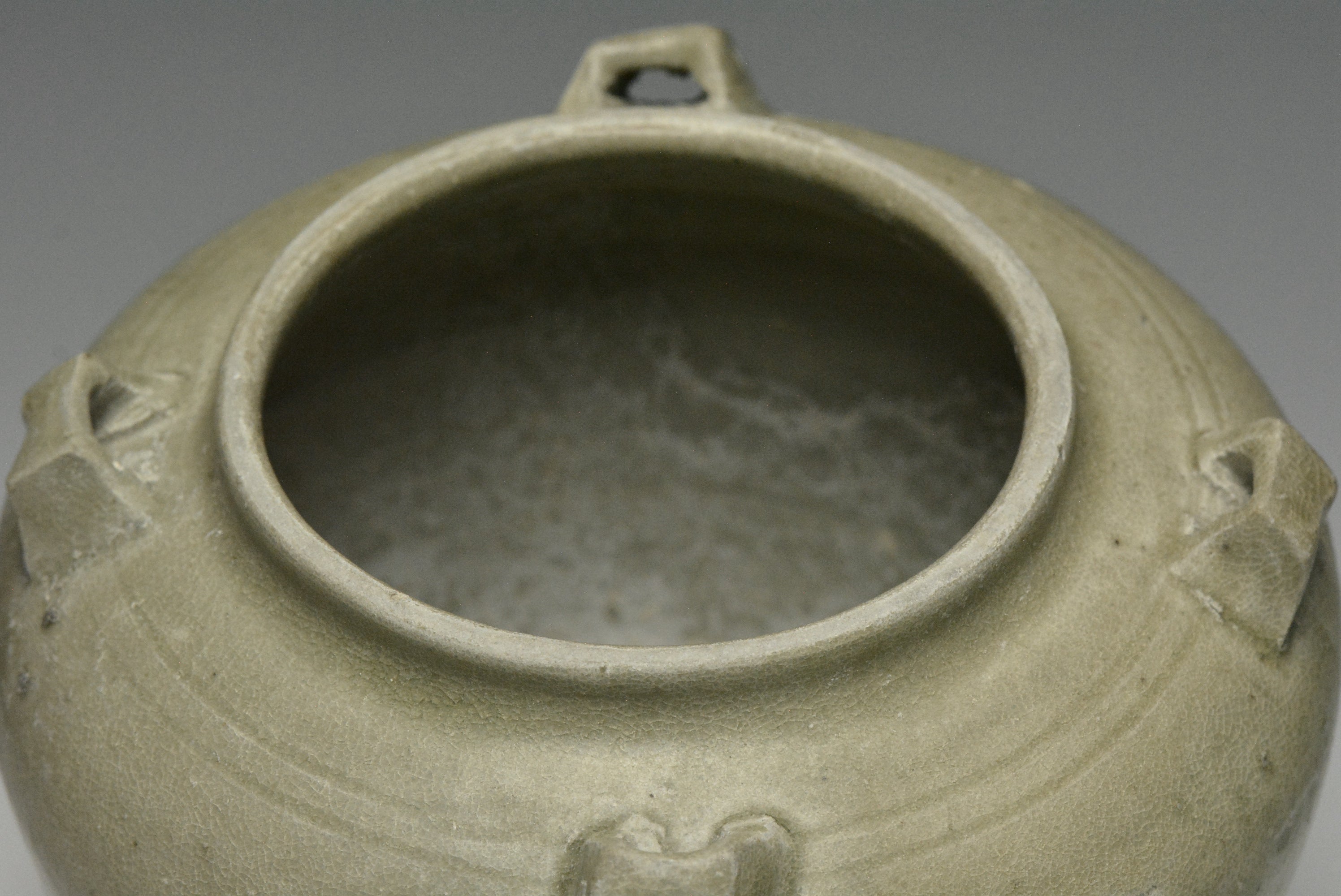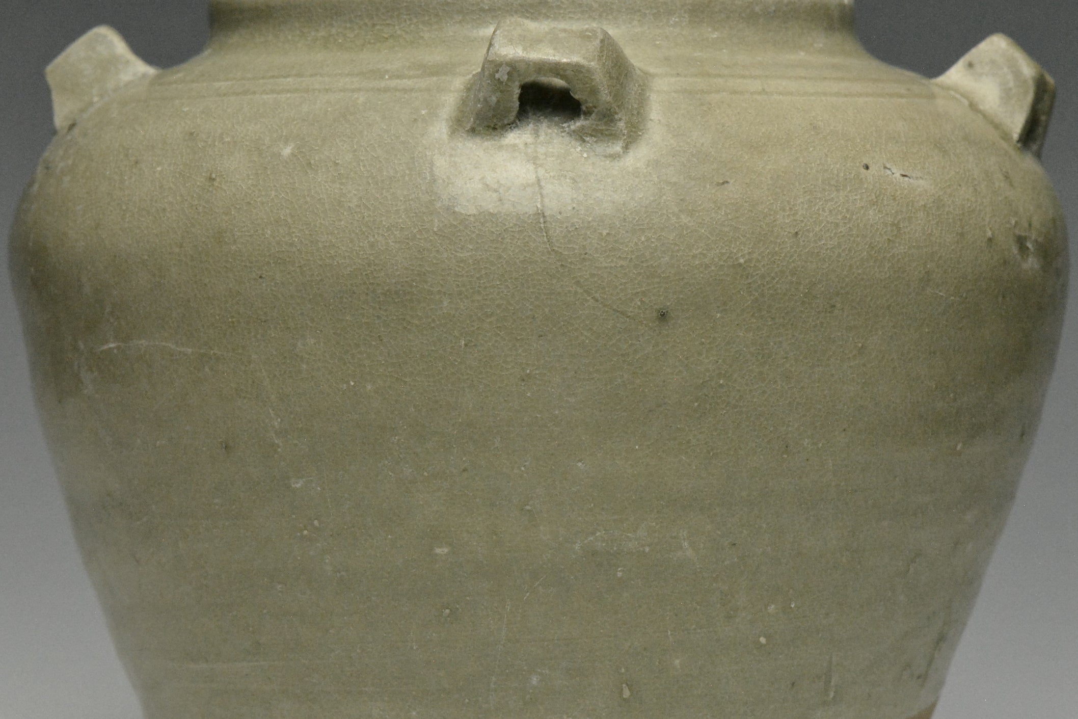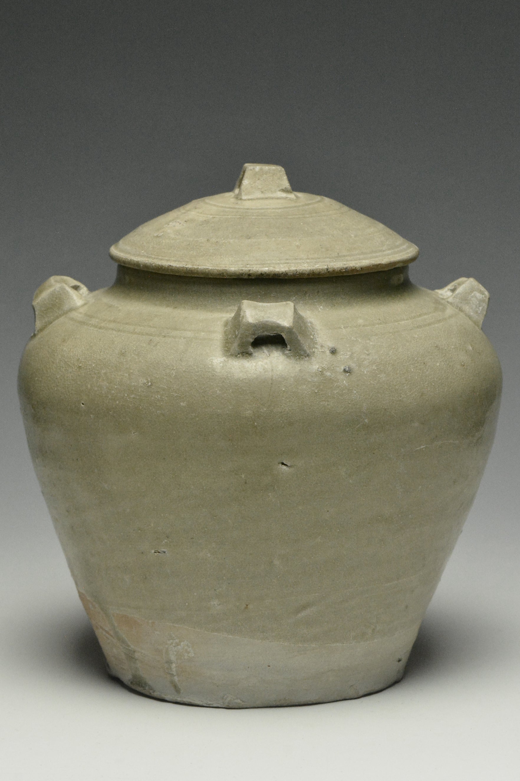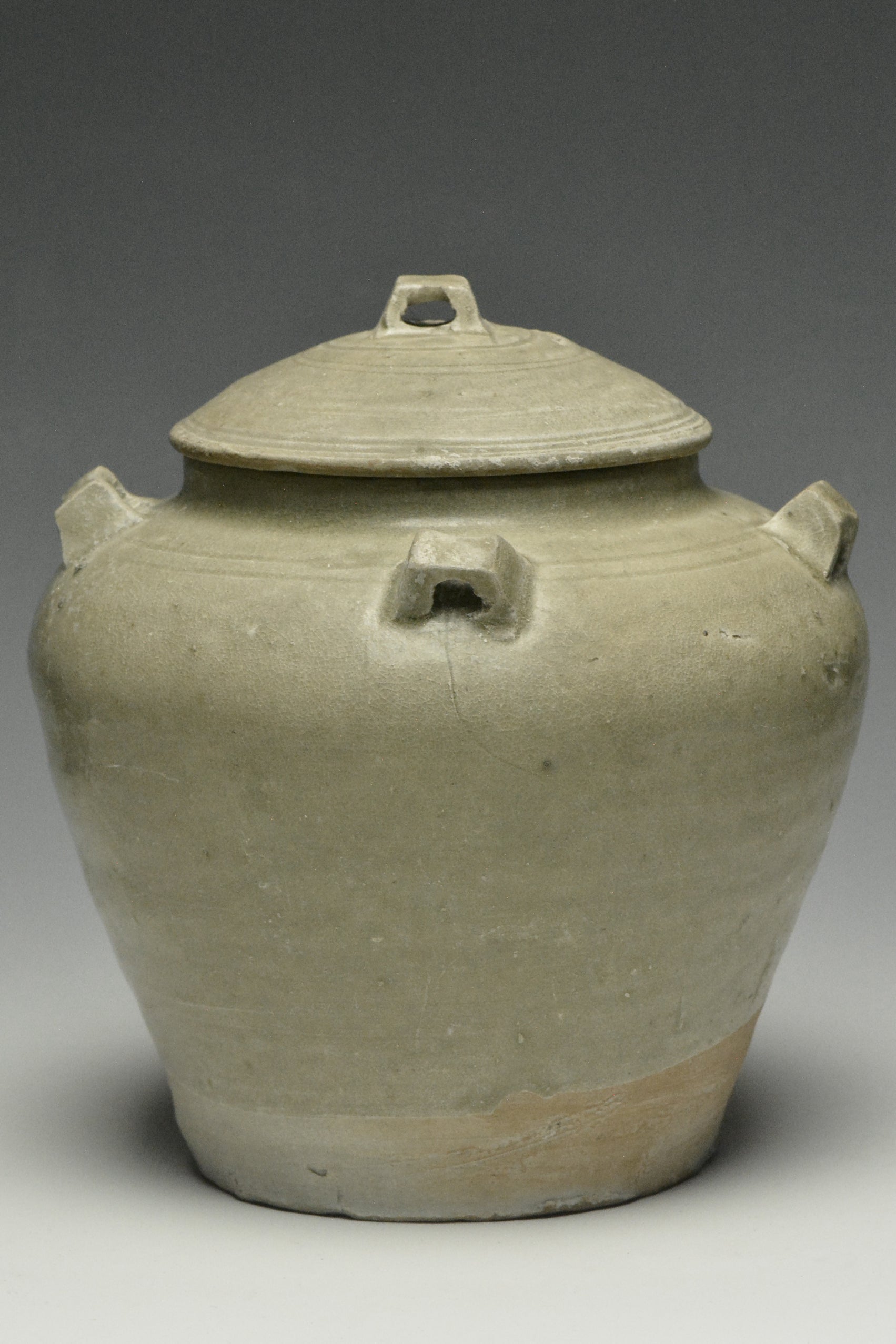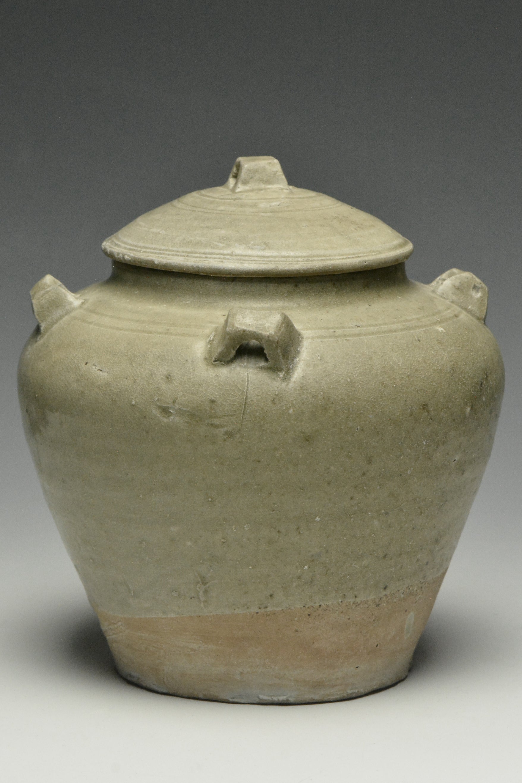 A JIN DYNASTY CELADON GLAZED JAR AND COVER