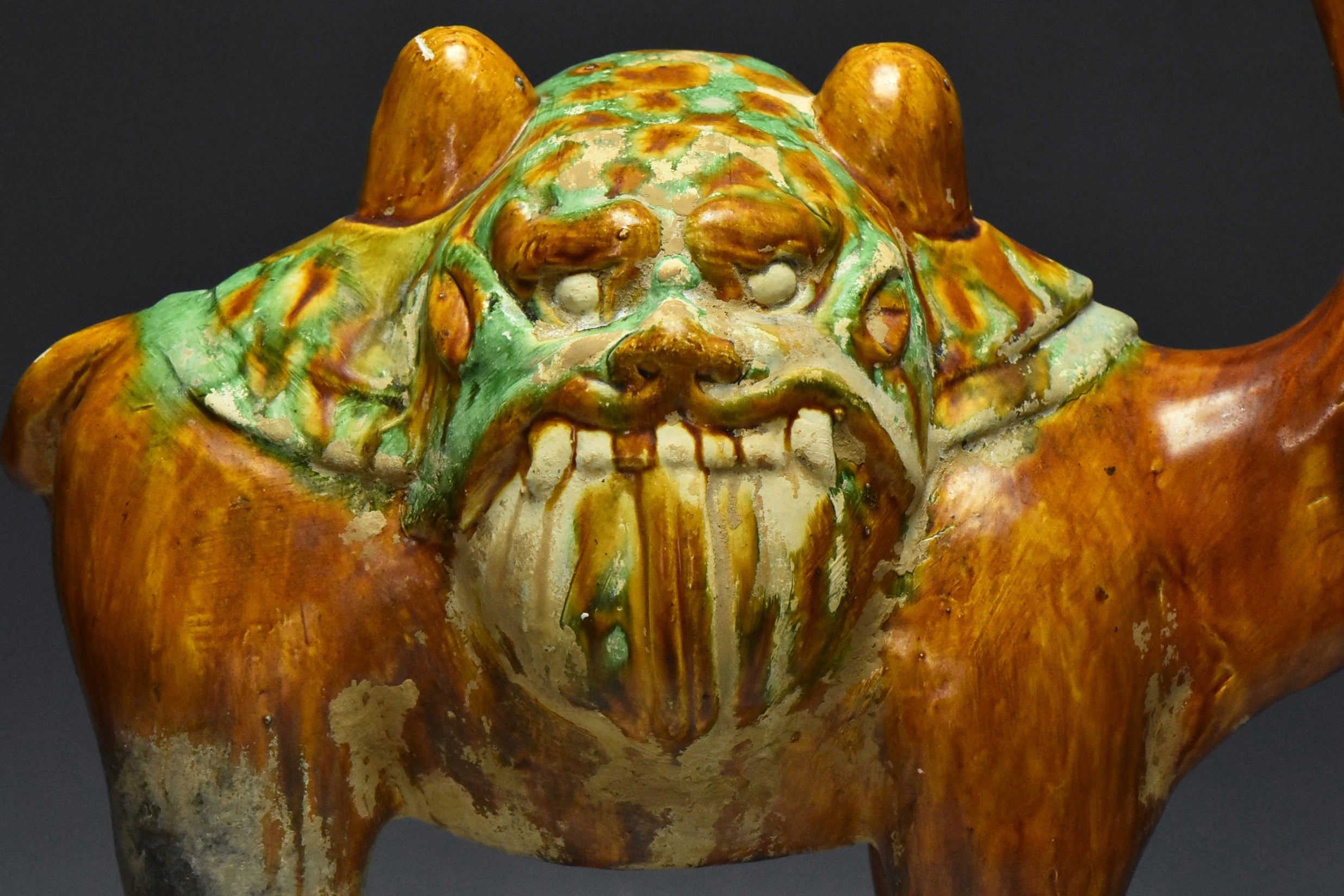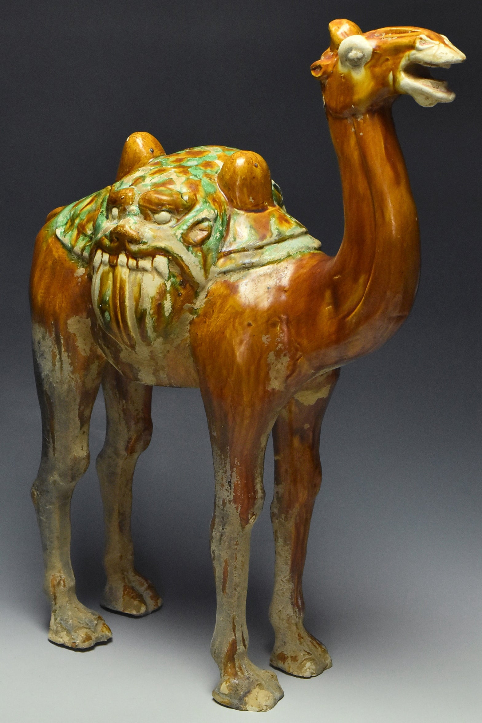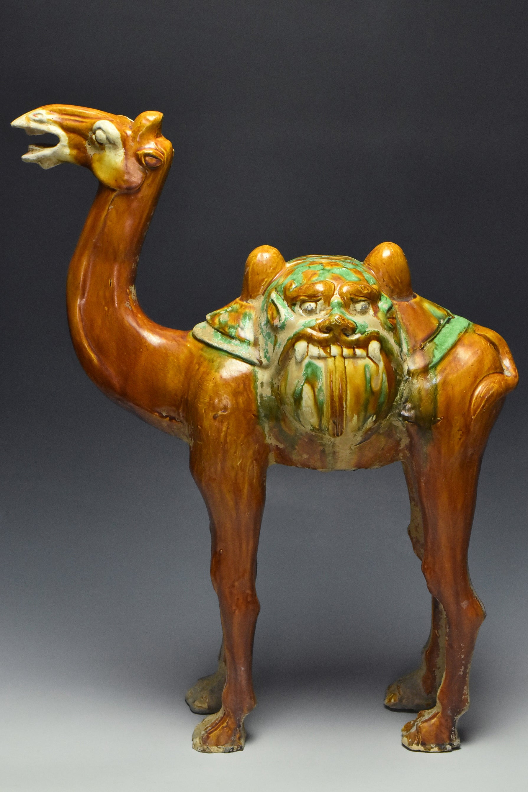 A LARGE TANG DYNASTY SANCAI-GLAZED POTTERY CAMEL