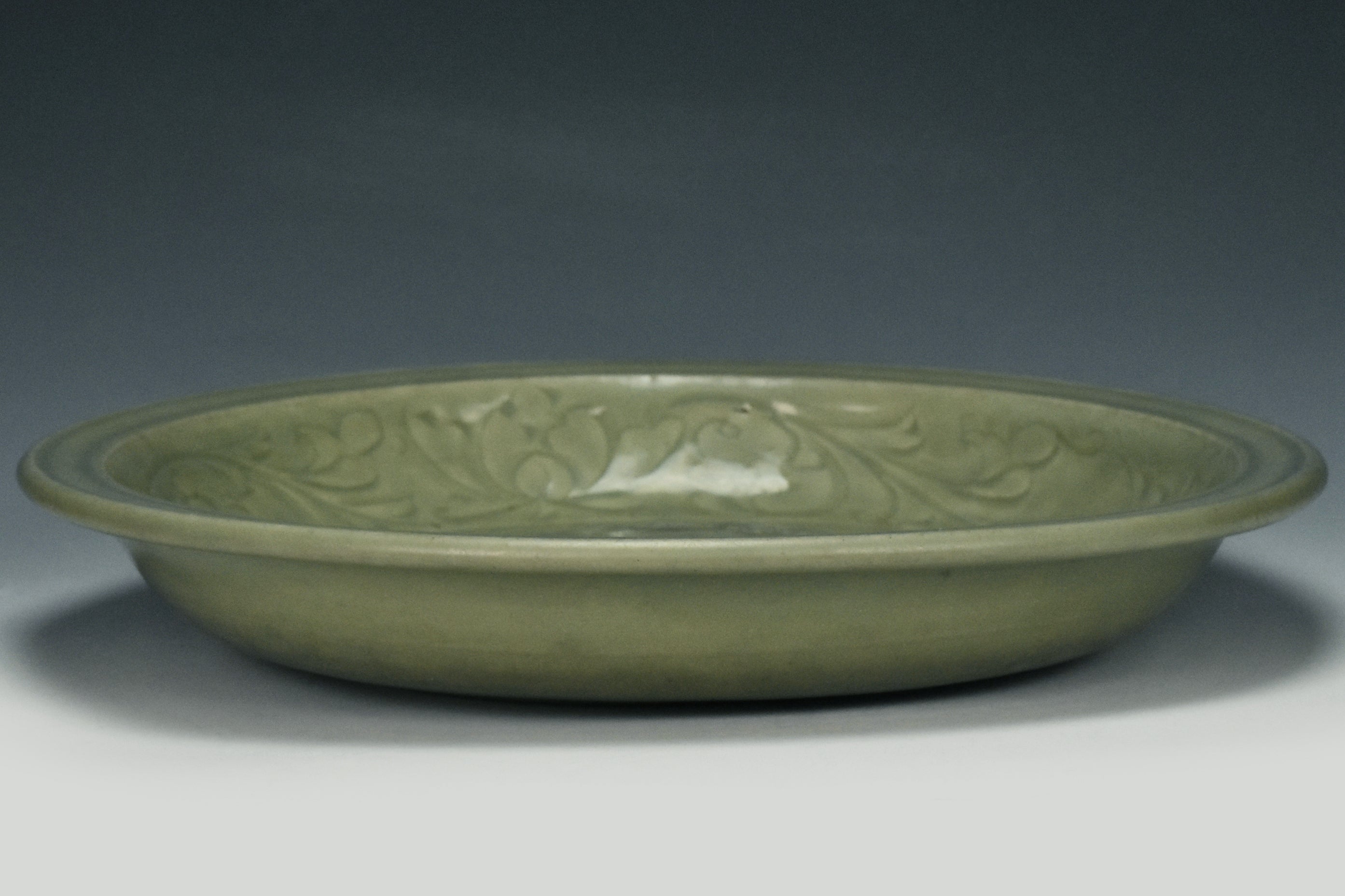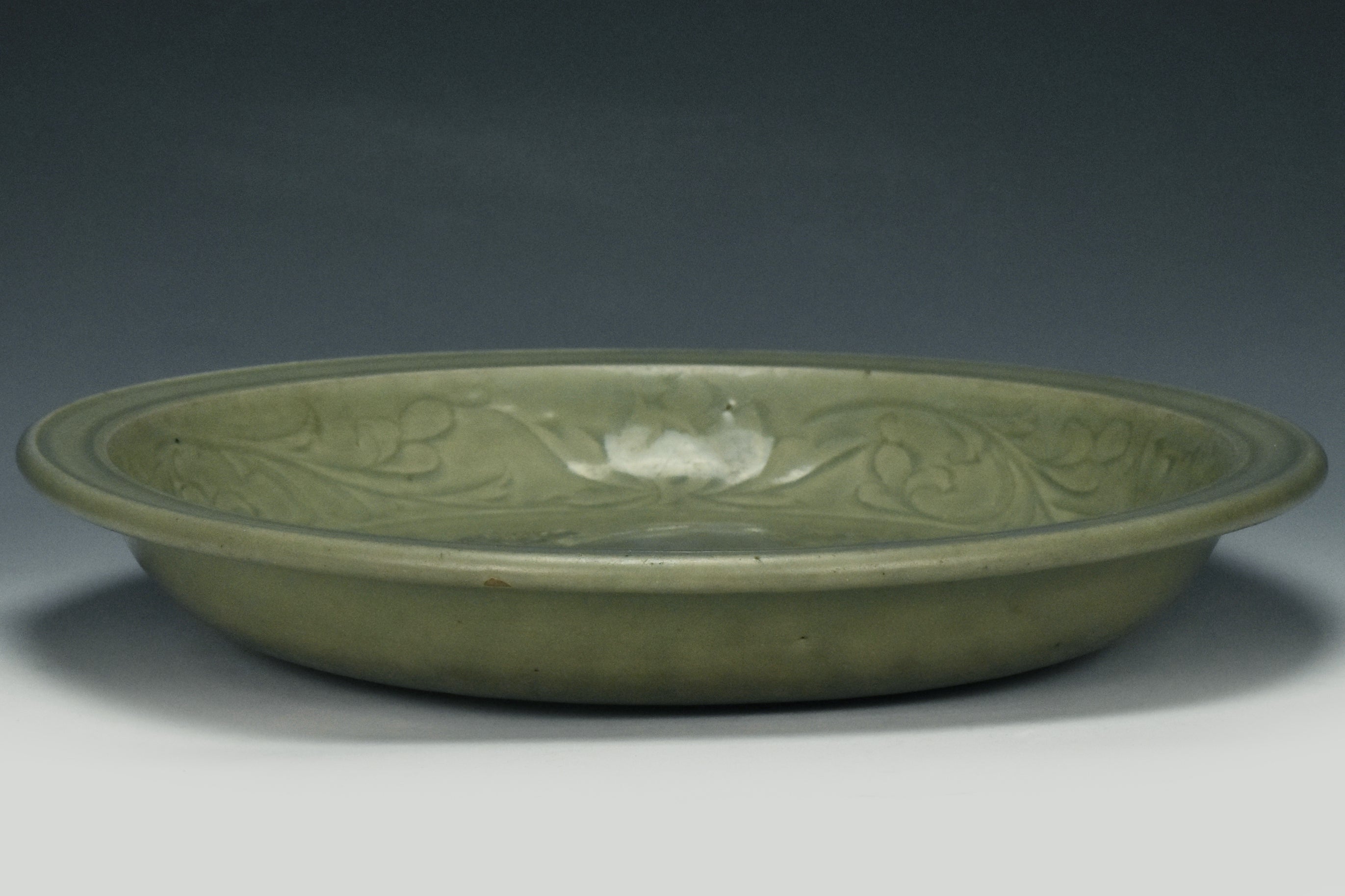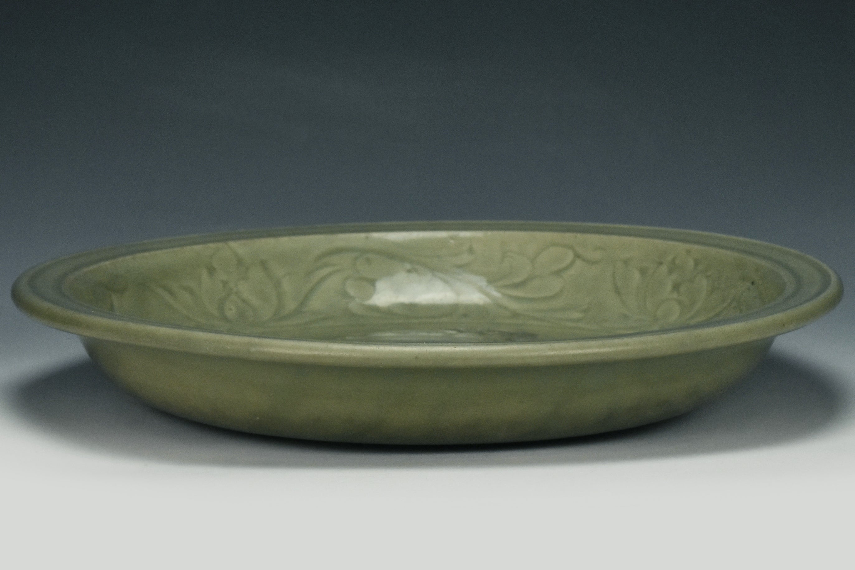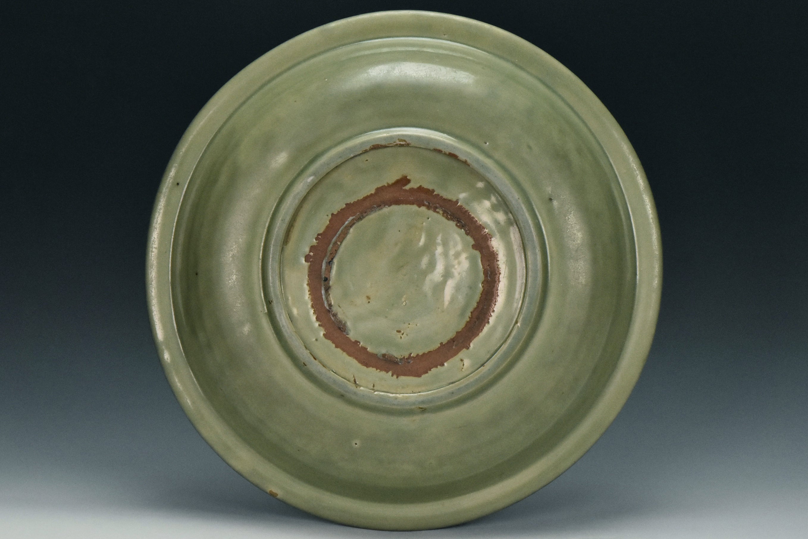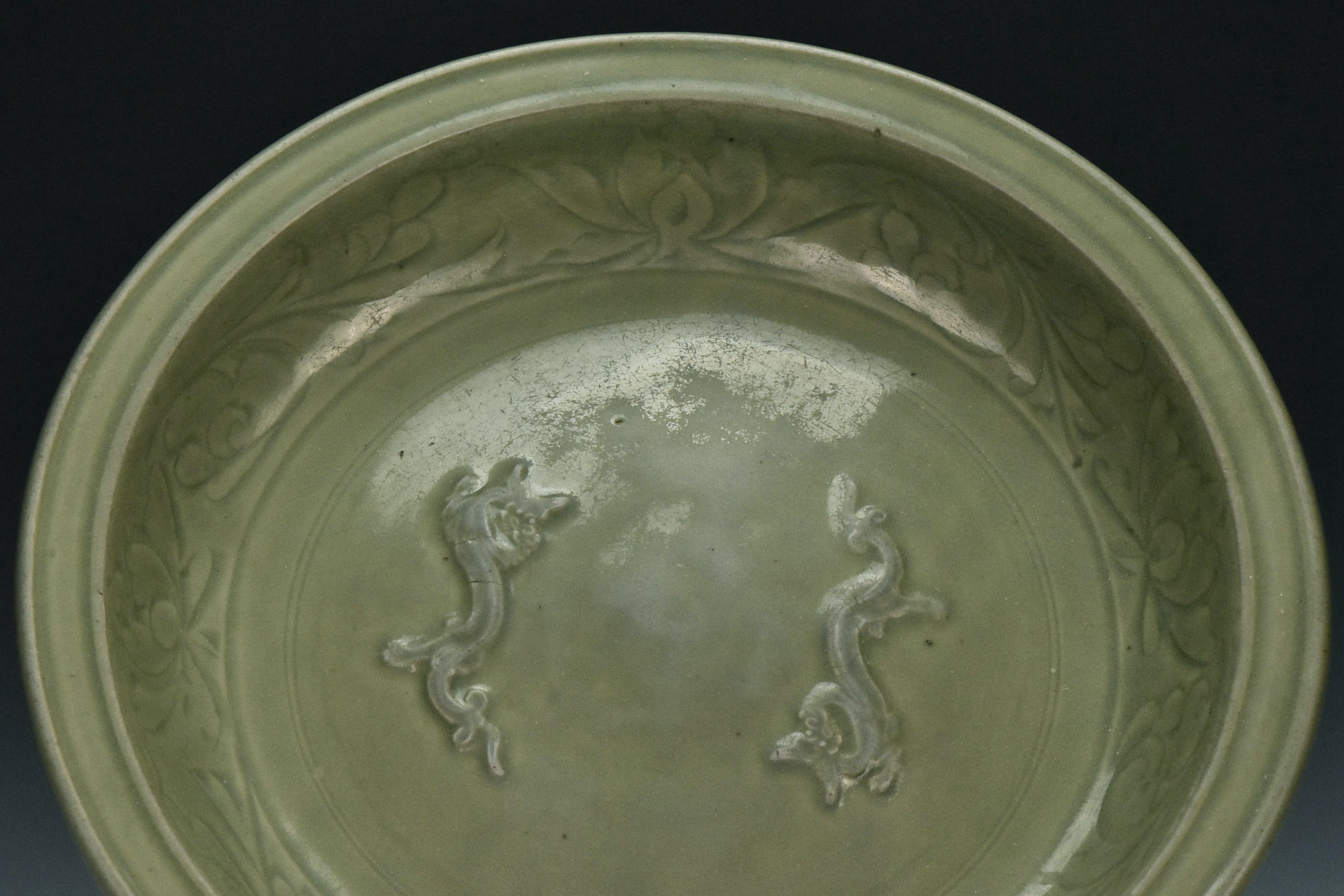 A LARGE YUAN DYNASTY LONGQUAN CELADON DRAGON DISH