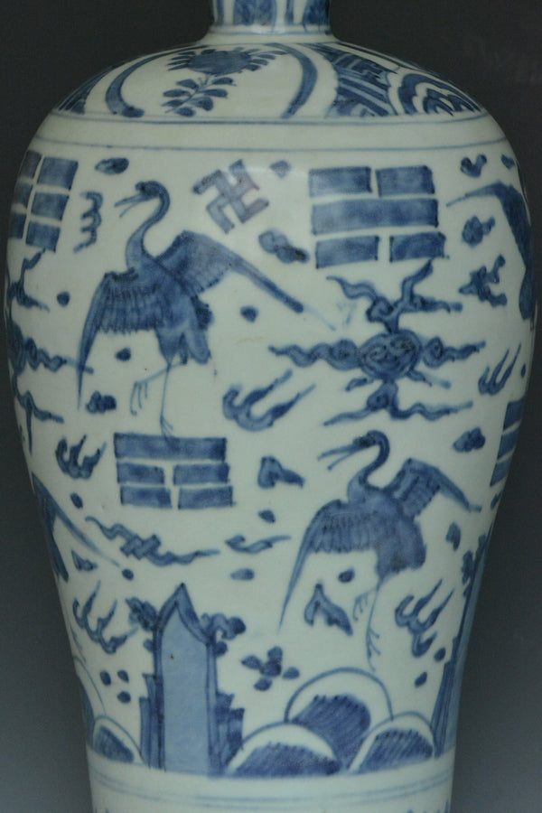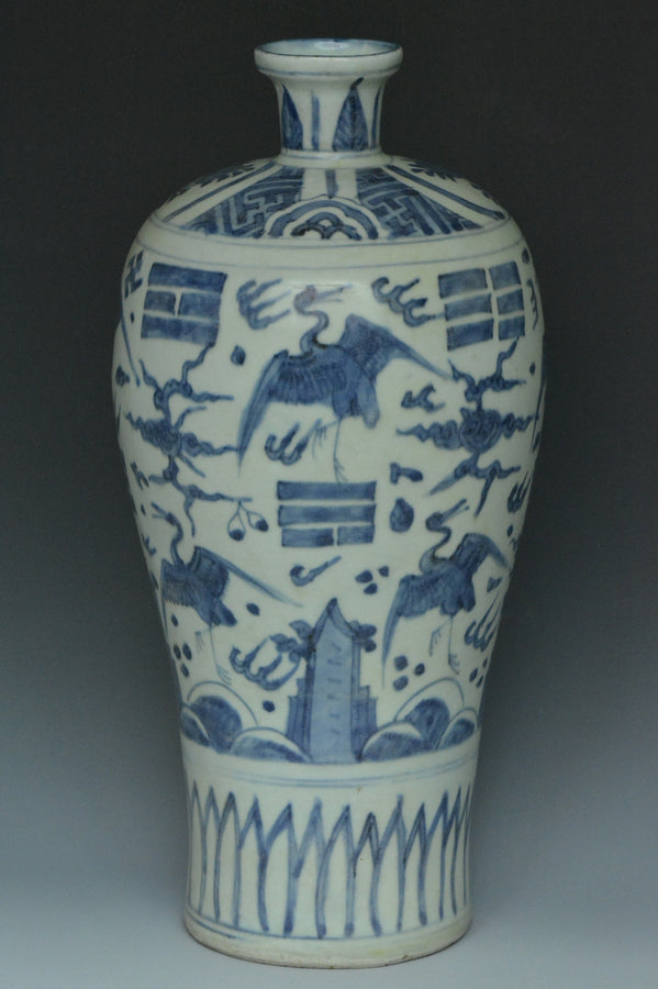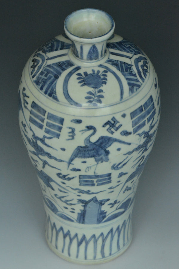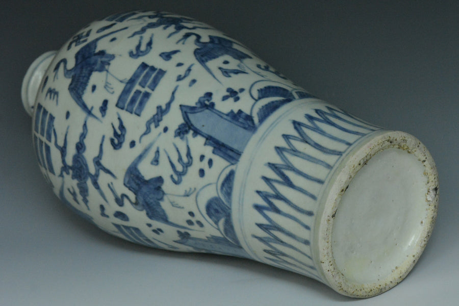 A LATE MING DYNASTY BLUE AND WHITE MEIPING VASE
