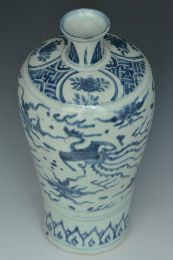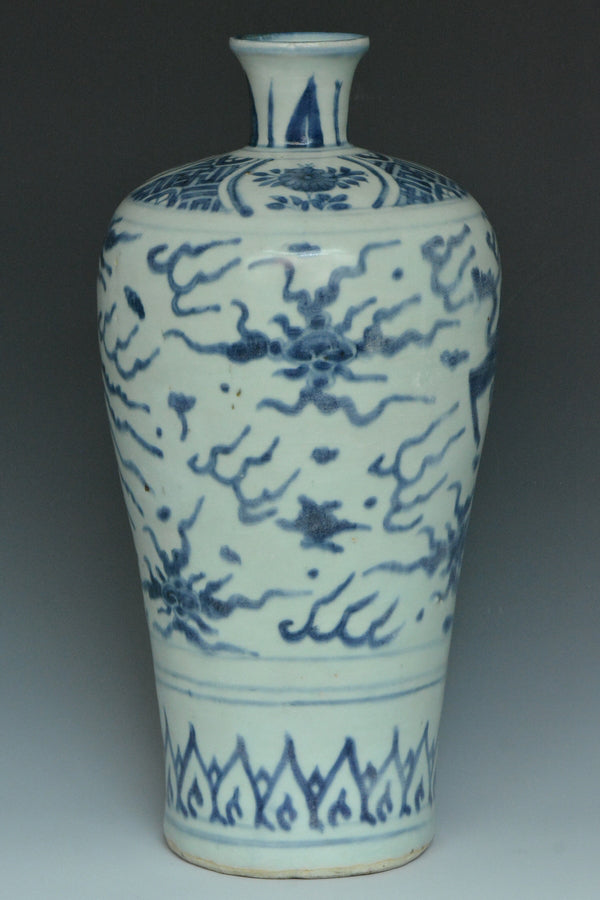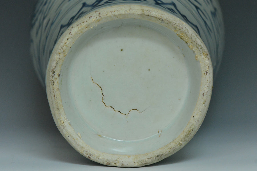 A LATE MING DYNASTY BLUE AND WHITE MEIPING VASE