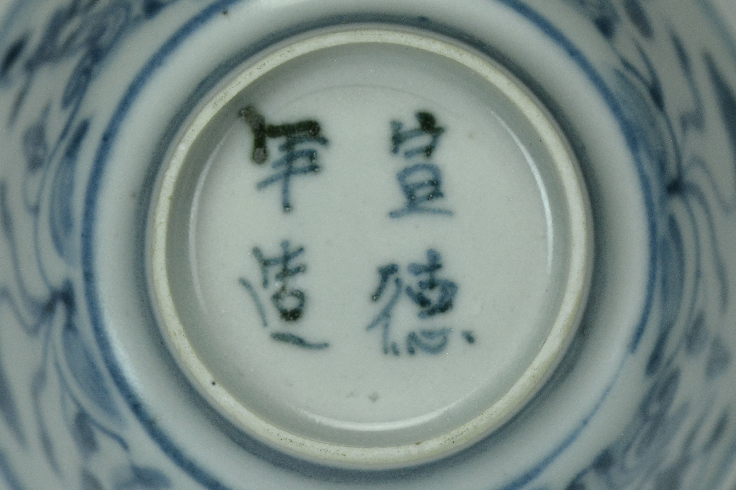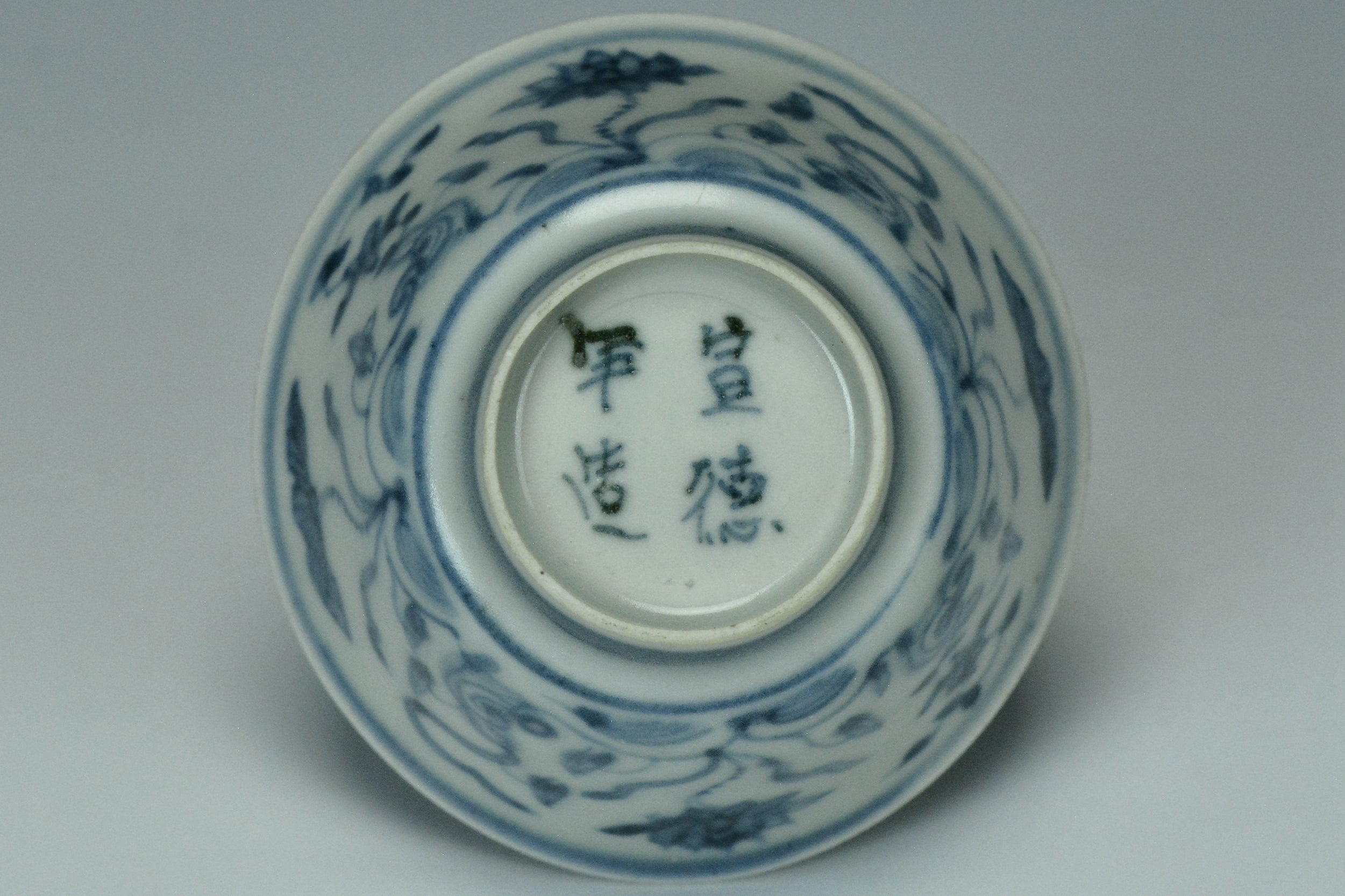 A MING DYNASTY BLUE AND WHITE CUP XUANDE MARK ZHENGDE PERIOD