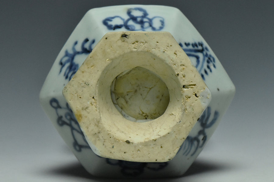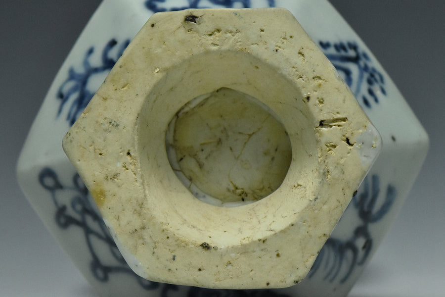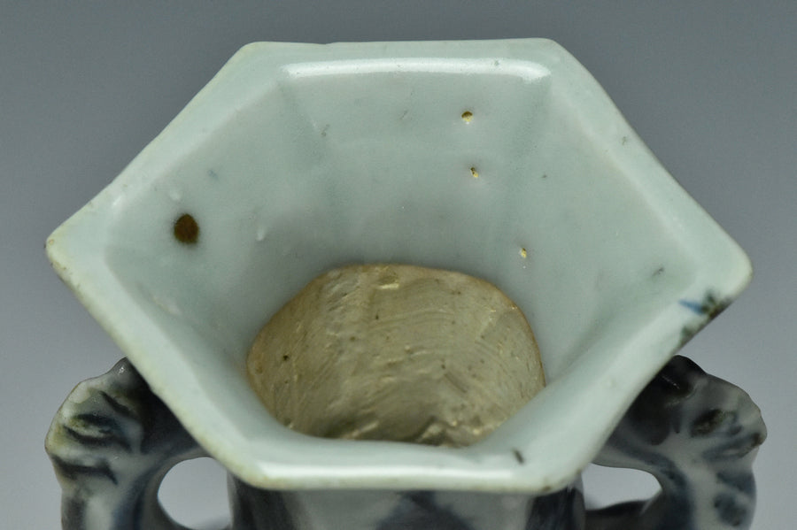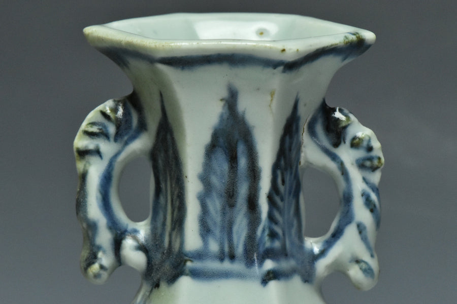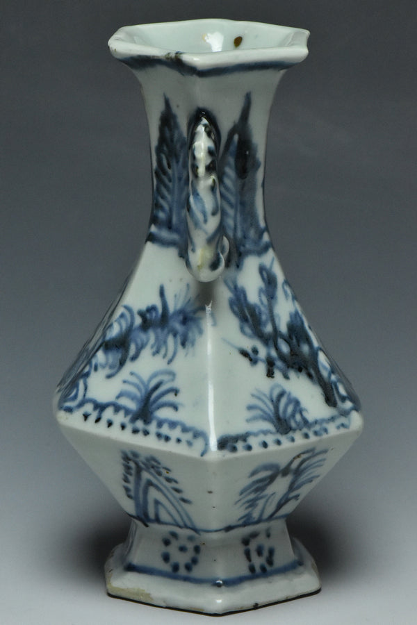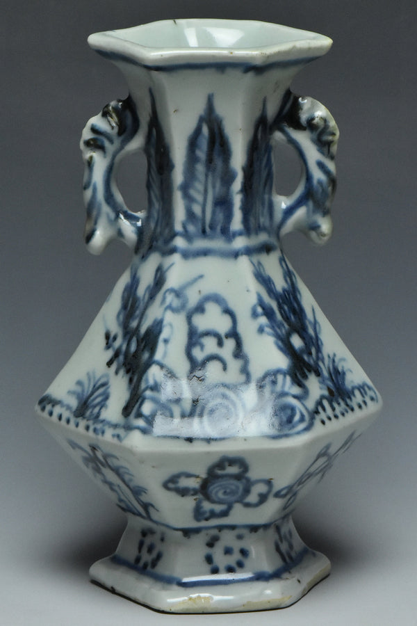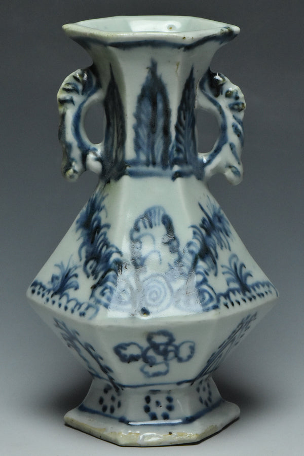A MING DYNASTY BLUE AND WHITE HANDLED VASE 15TH CENTURY