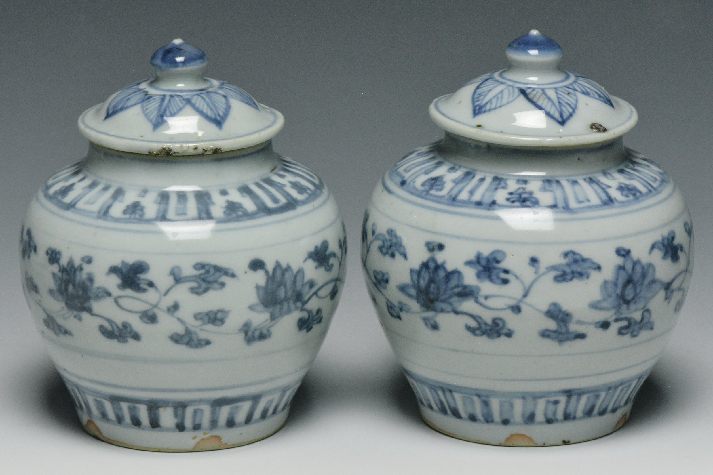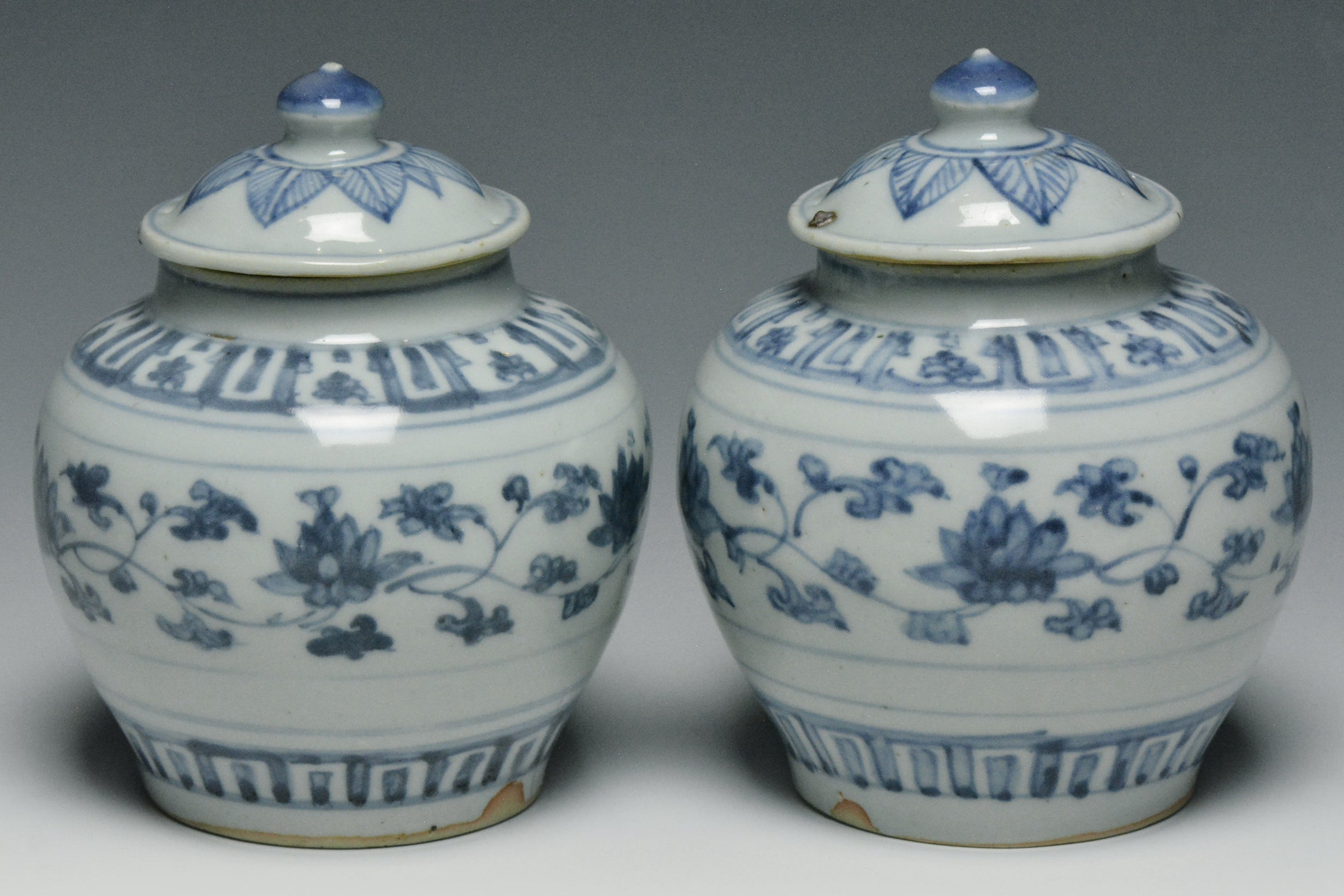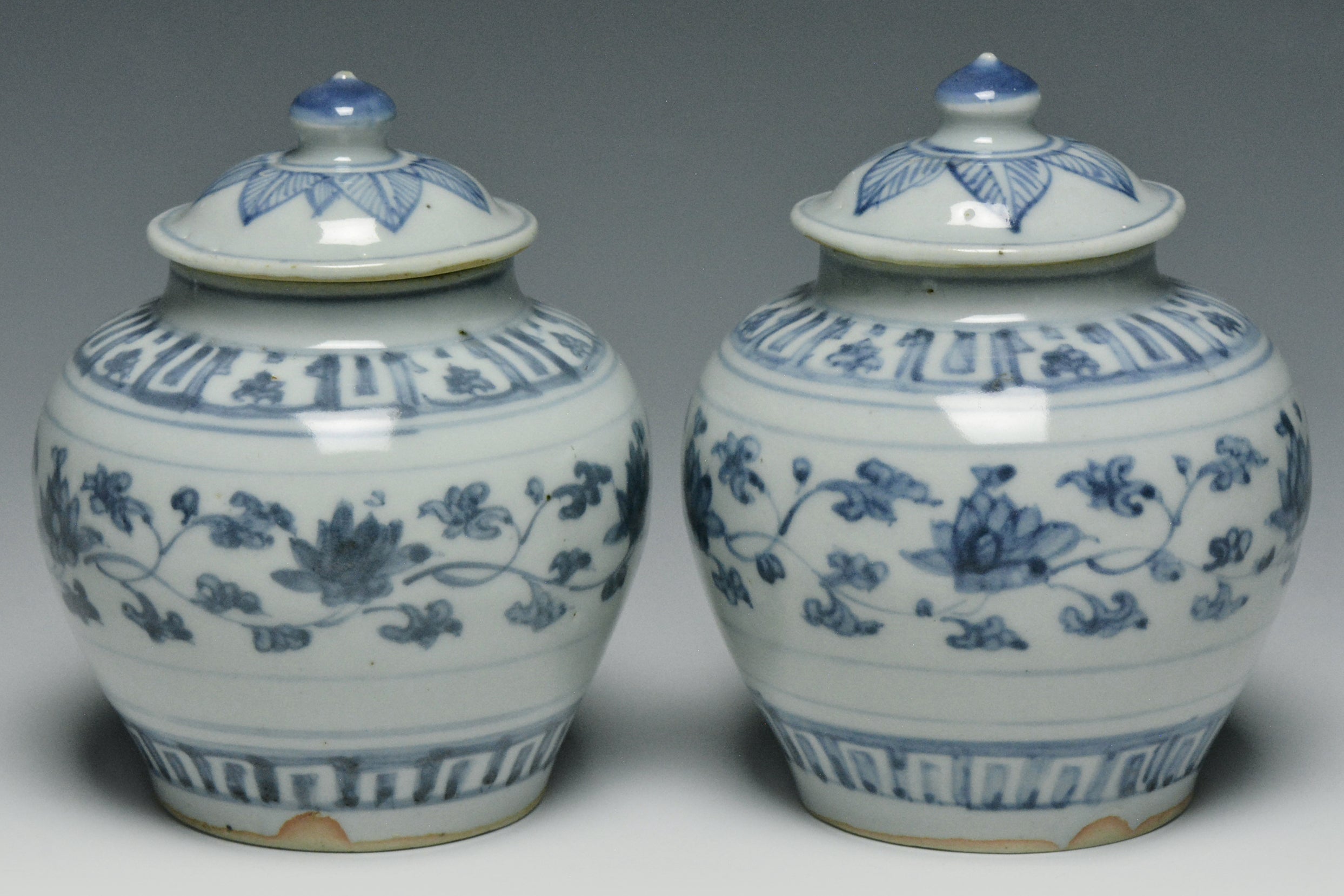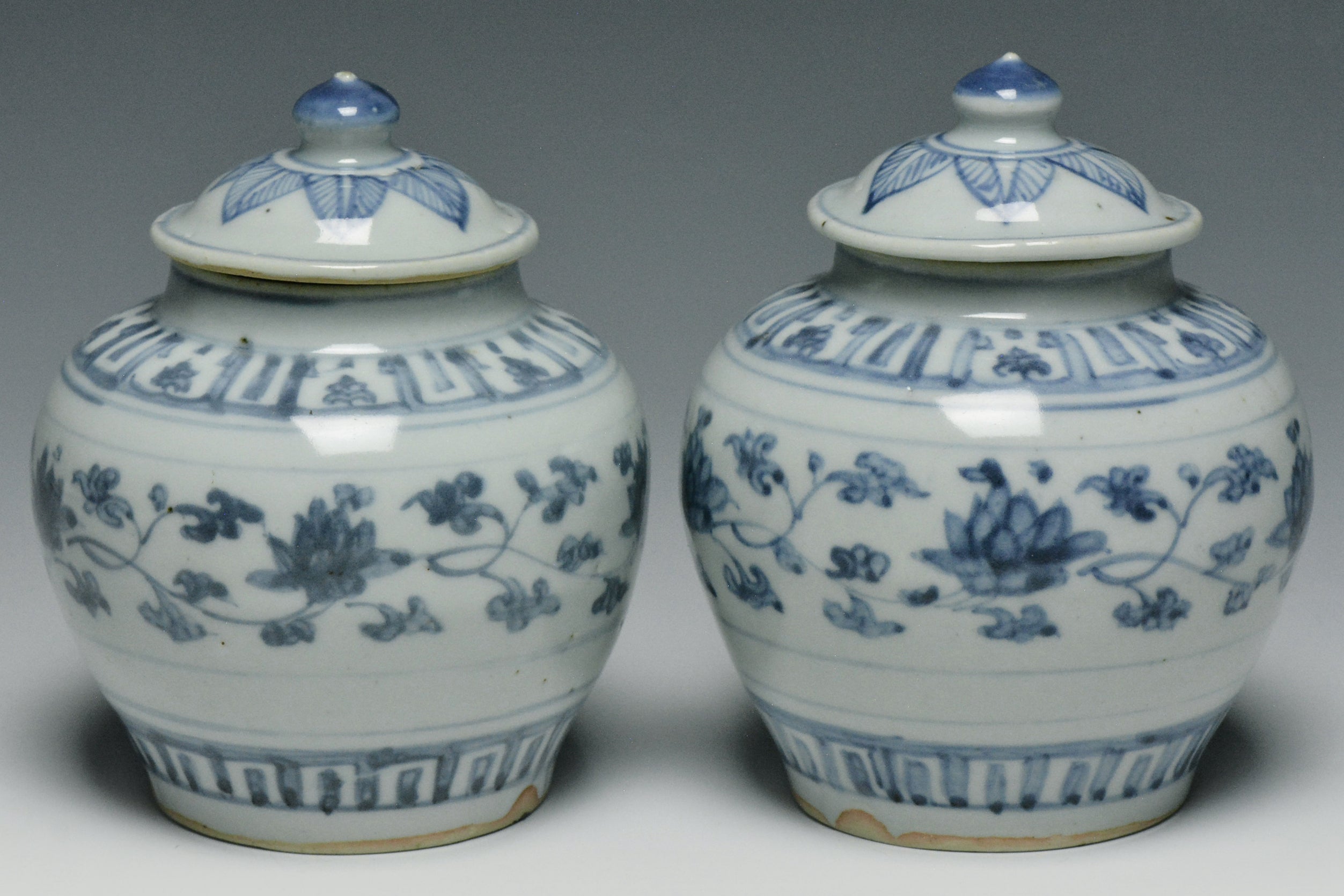 A PAIR OF MING DYNASTY BLUE AND WHITE JARS 16TH CENTURY