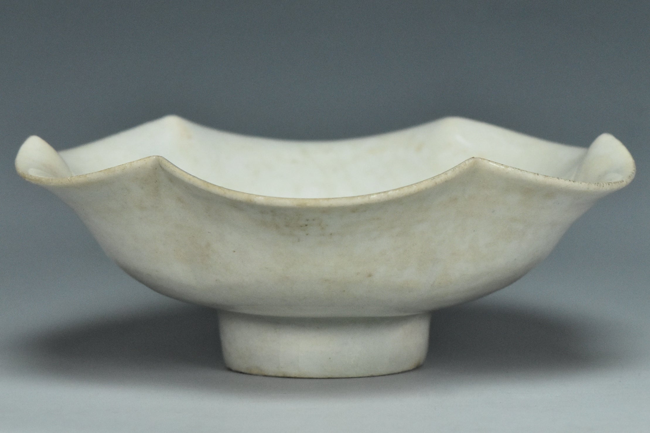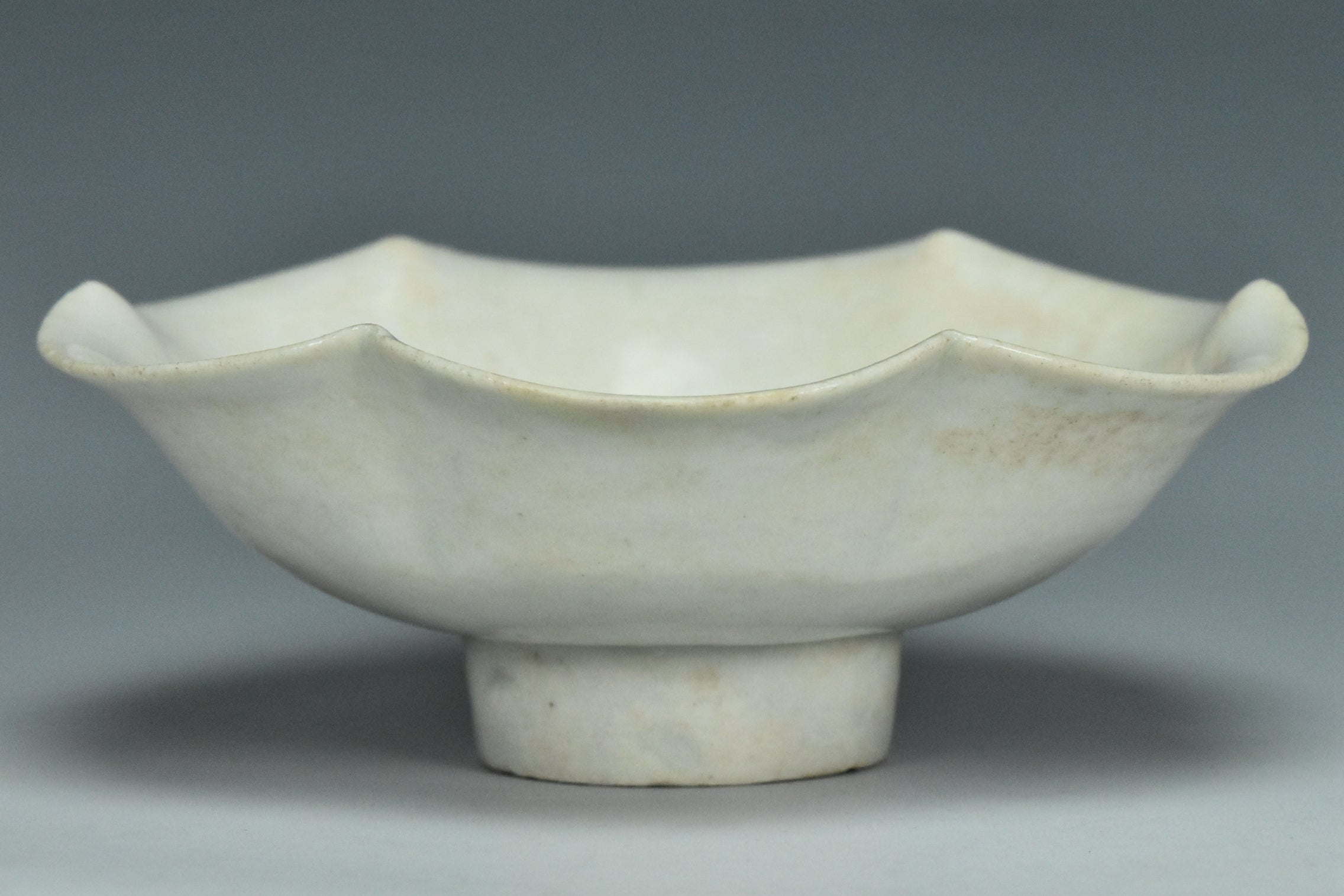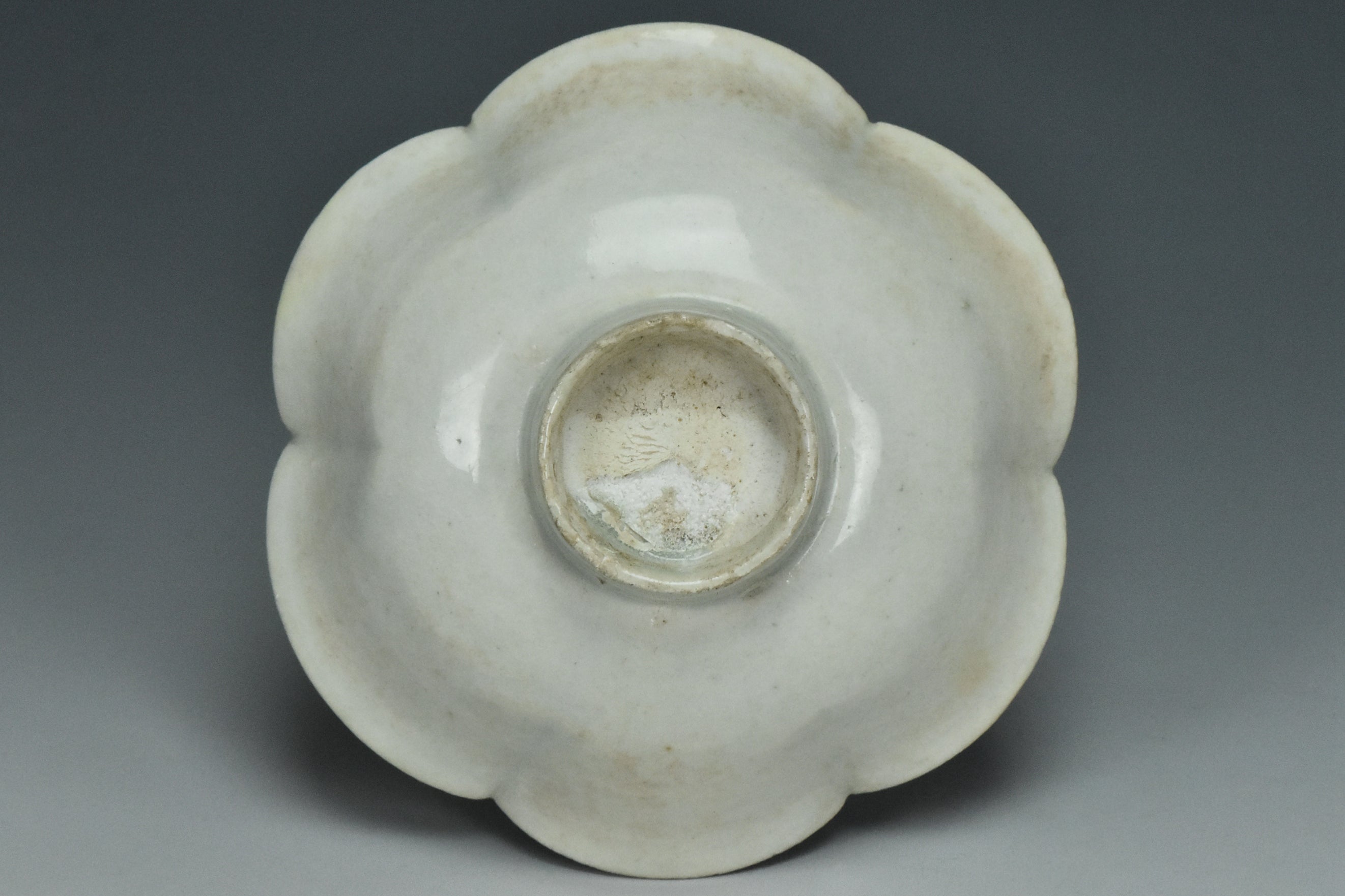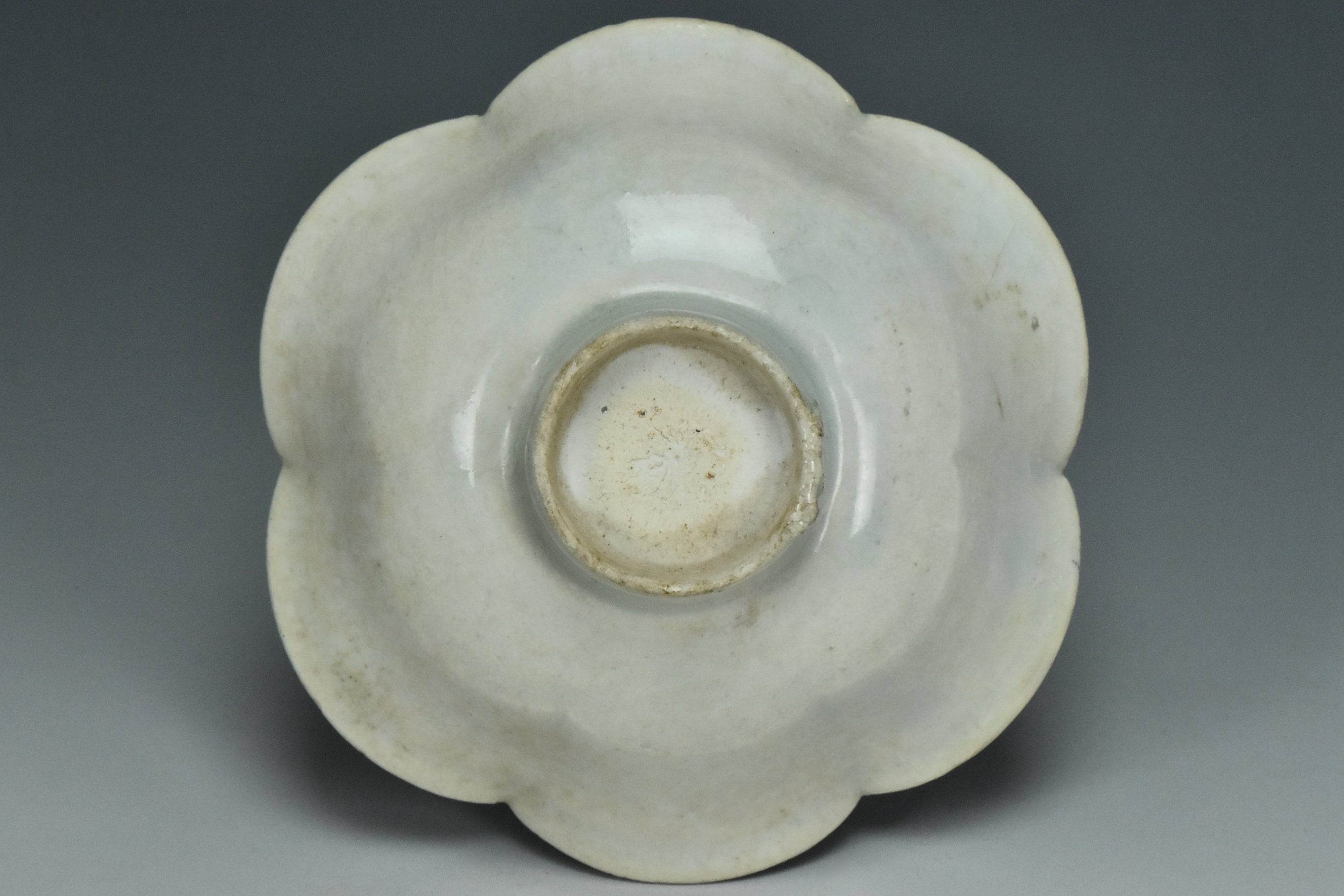 A PAIR OF SONG DYNASTY CARVED QINGBAI FOLIATE-RIM DISHES