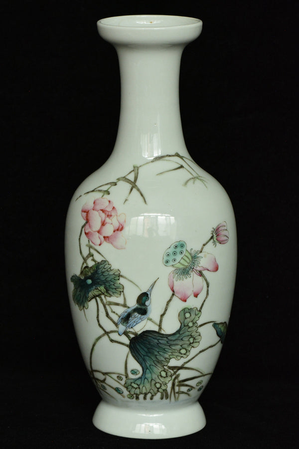 A QING DYNASTY FAMILLE ROSE VASE QIANLONG MARK 19TH CENTURY
