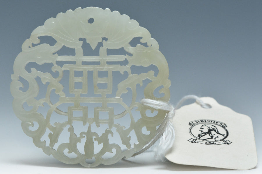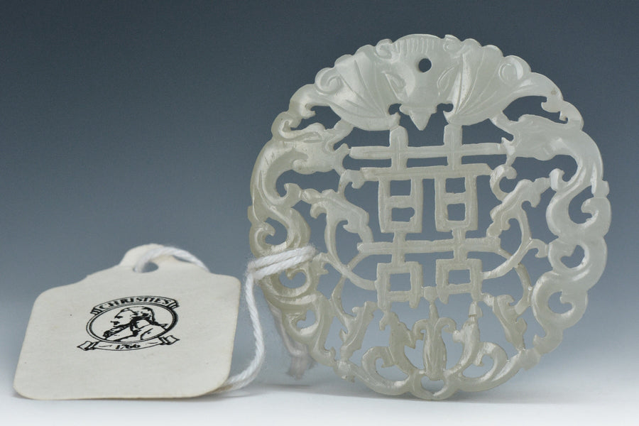 A QING DYNASTY WHITE JADE PENDANT 19TH CENTURY EX. CHRISTIE'S