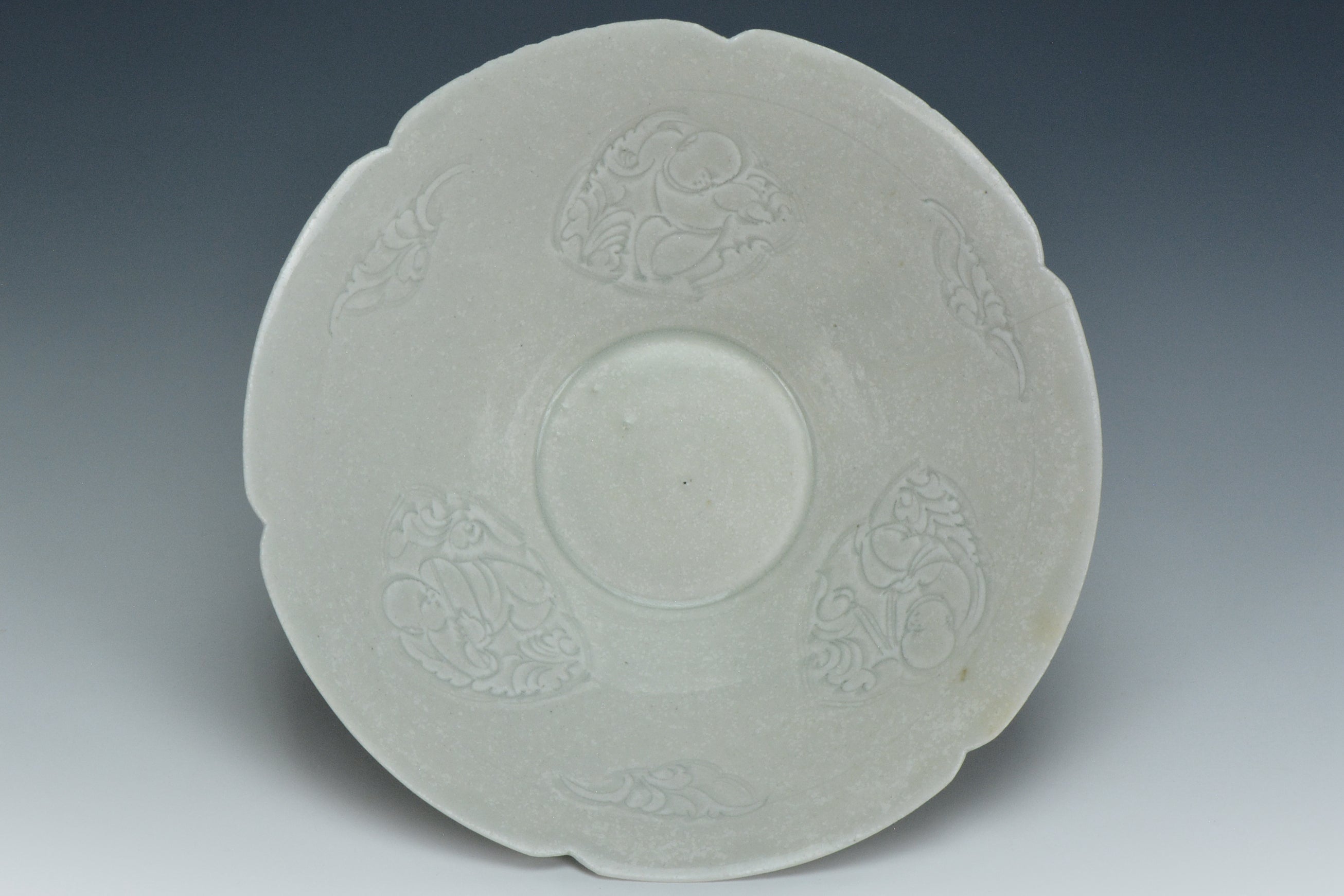 A SONG DYNASTY HUTIAN QINGBAI CARVED BOYS LOBED BOWL