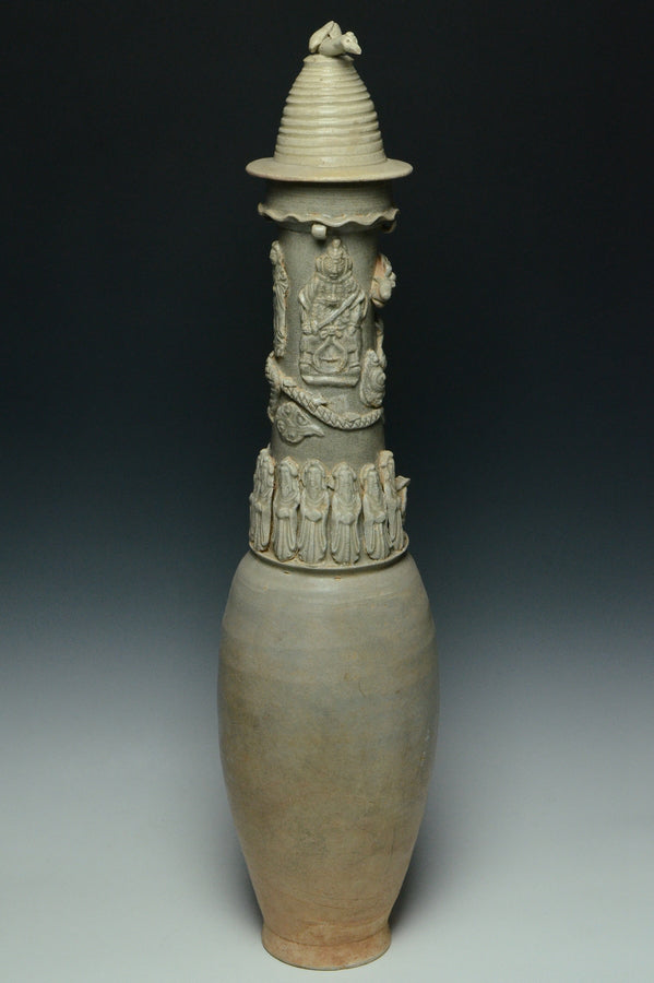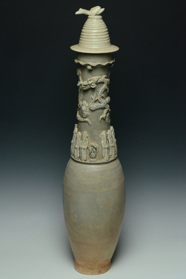 A SONG DYNASTY QINGBAI FUNERARY VASE AND COVER