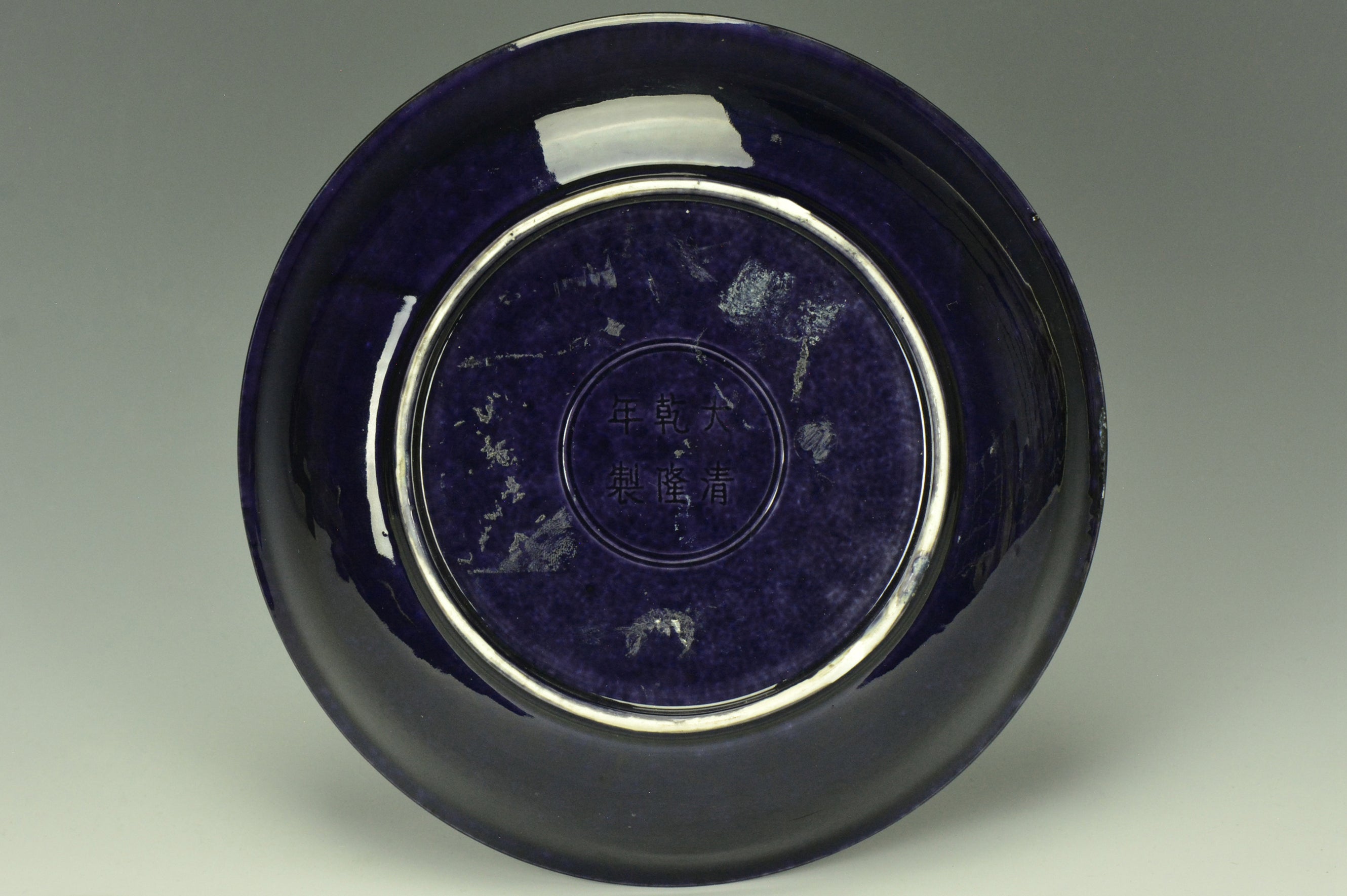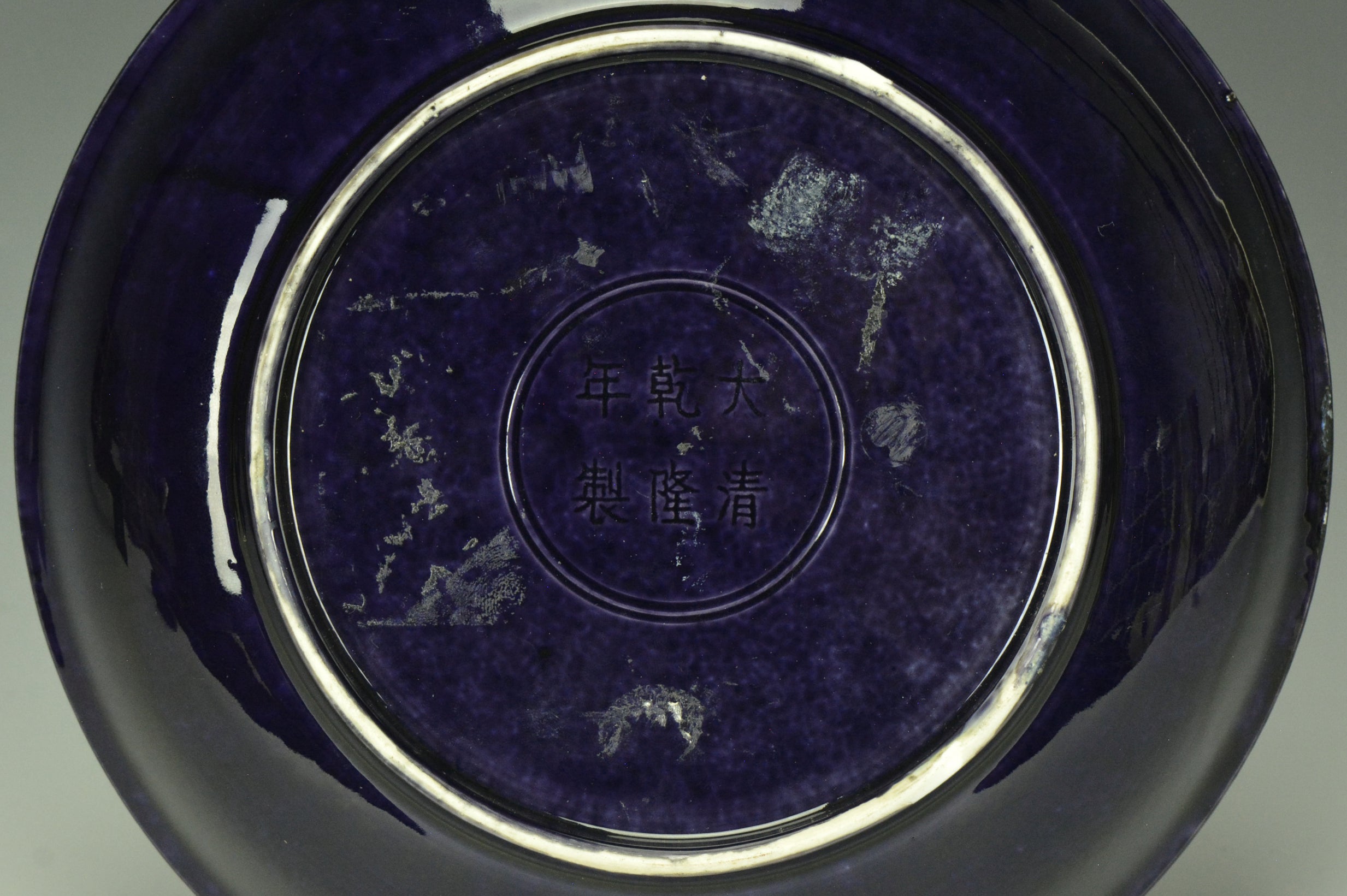 AN AUBERGINE GLAZED DISH QIANLONG MARK AND PERIOD EX. CHRISTIE'S 2014