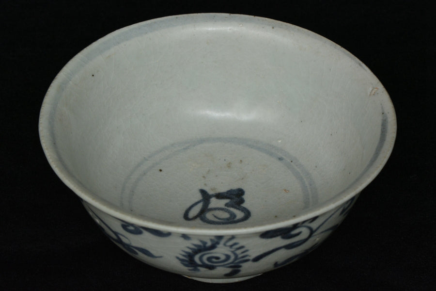 AN EARLY MING DYNASTY BLUE AND WHITE BOWL