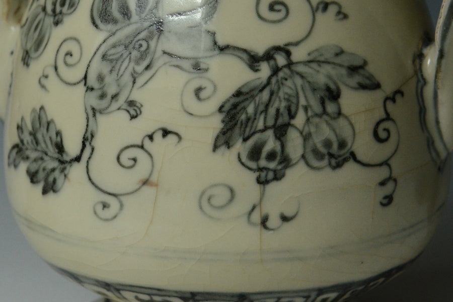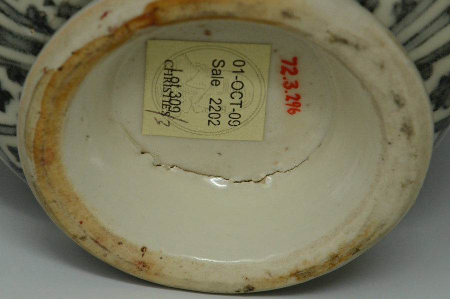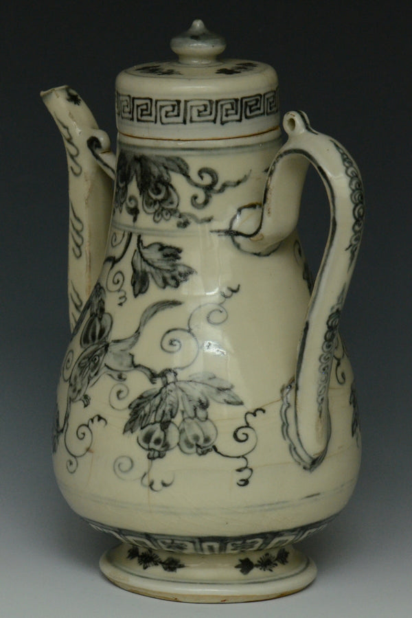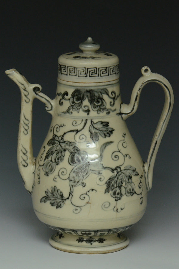 AN EARLY MING DYNASTY BLUE AND WHITE WINE EWER EX. CHRISTIE'S 2009