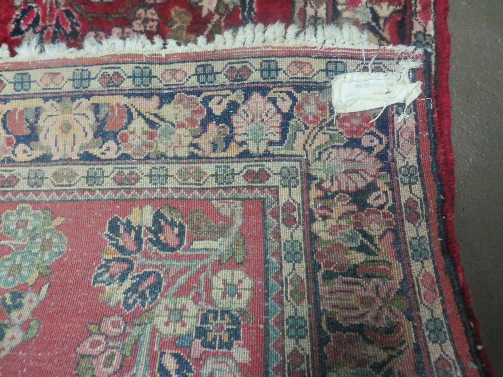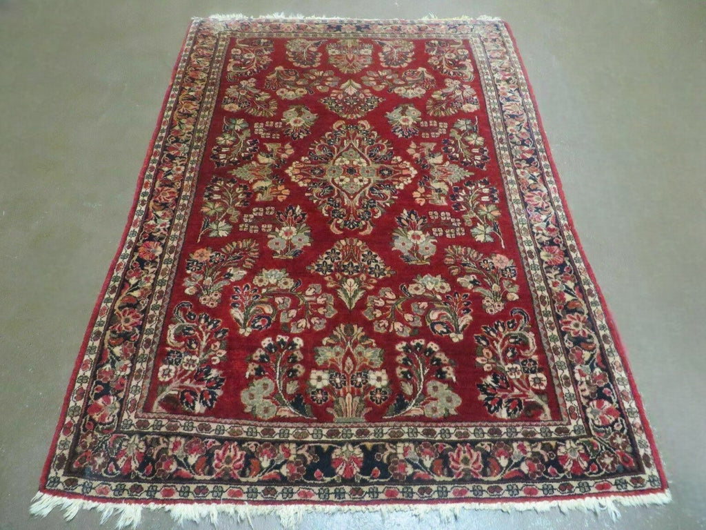 1920s Azerbaijan 1920s Red Antique Persian Sarouk Rug 3x5 - Red, Midnight Blue - Wool is a distinctive handmade vintage rug measuring 3' 4" x 4' 9". A Traditional Antique Handmade Hand Knotted Wool Persian Area Rug. A one-of-a-kind piece that brings warmth and character to a curated interior.