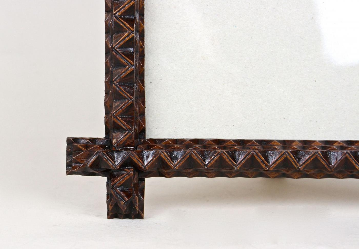 TRAMP ART, RUSTIC, PHOTO, PICTURE FRAME, HAND CARVED, AUSTRIA CIRCA 1880