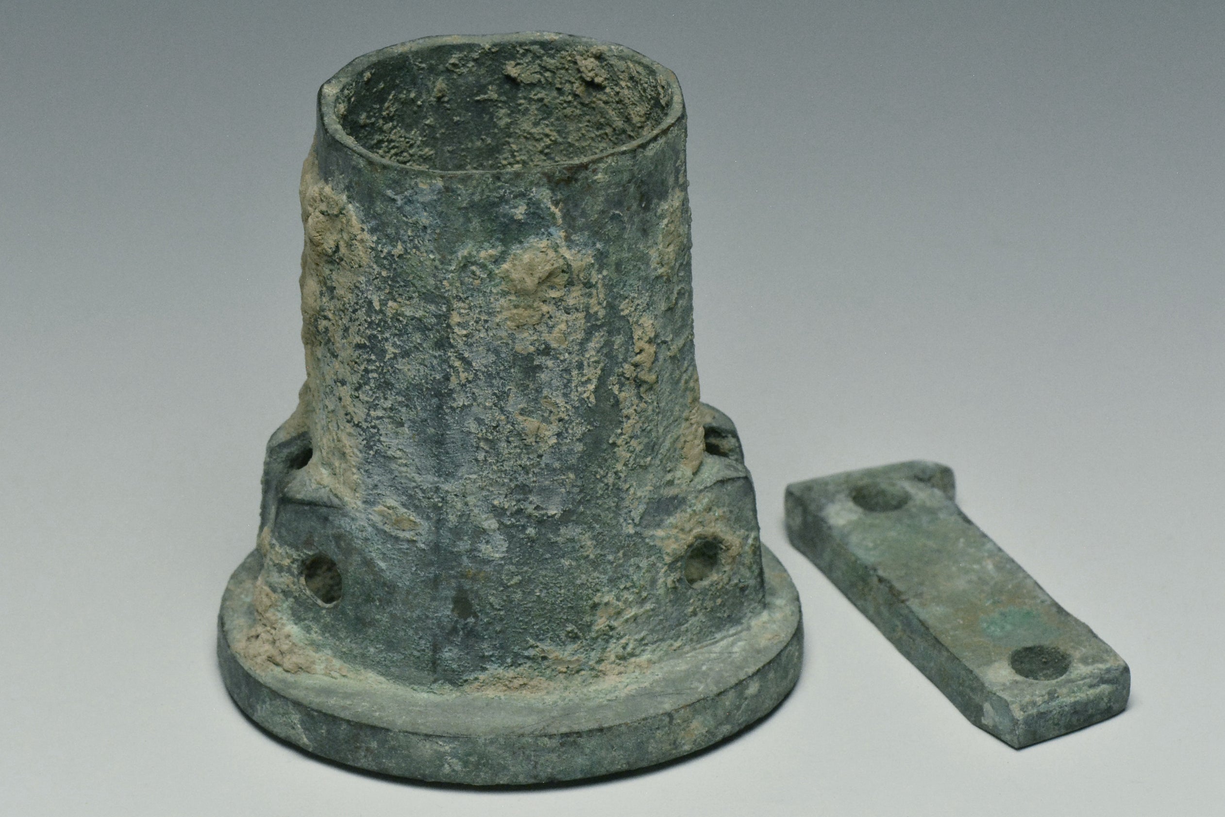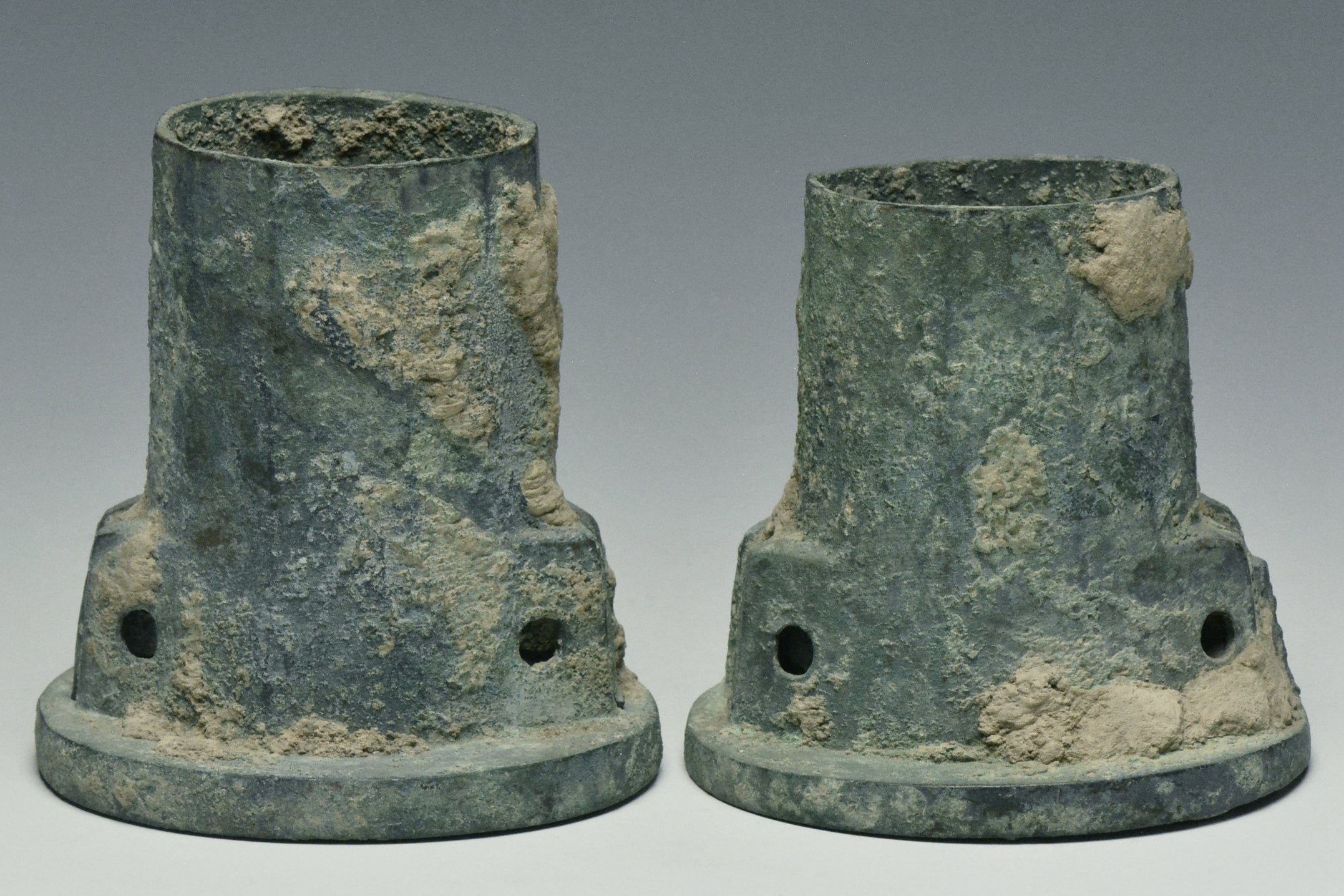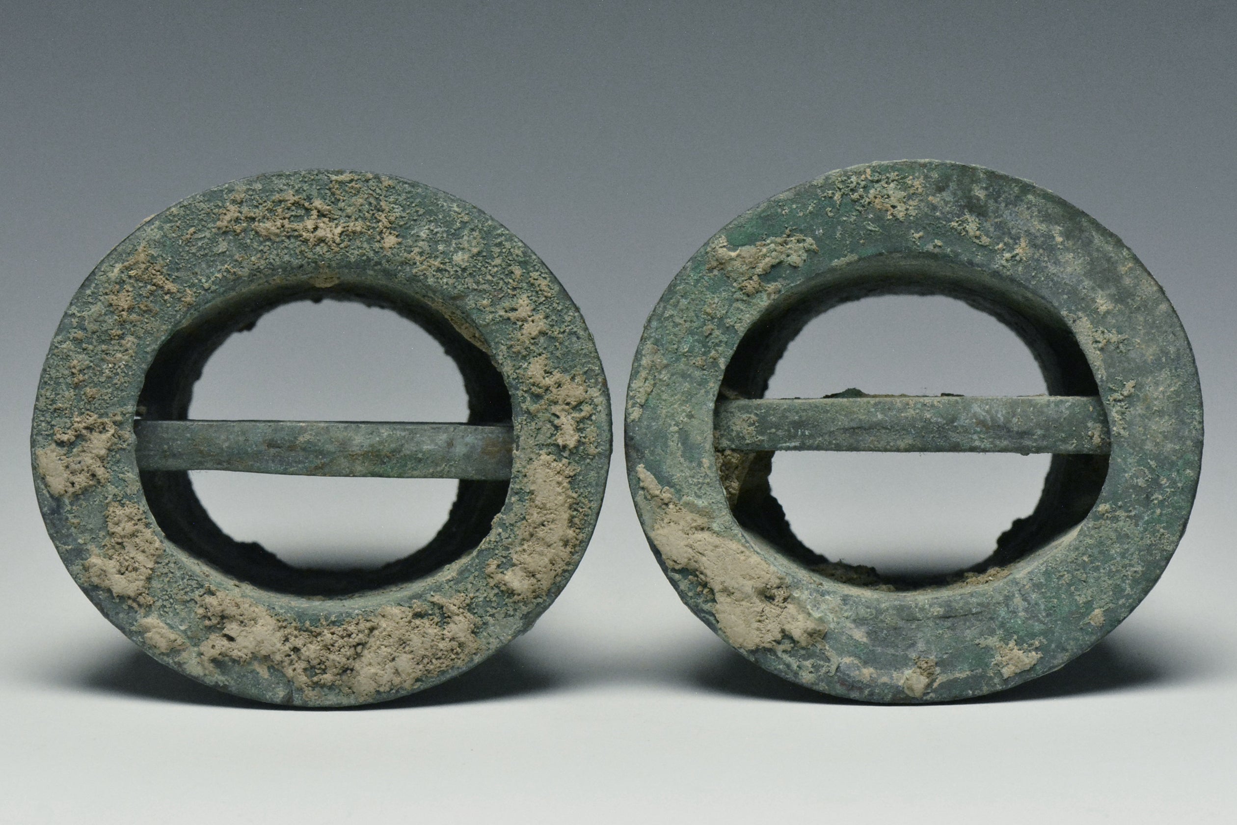 TWO HAN DYNASTY BRONZE CHARIOT FITTINGS